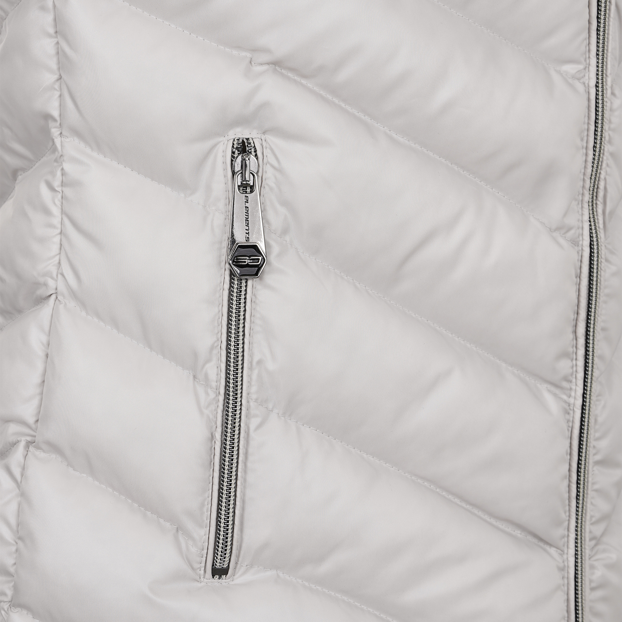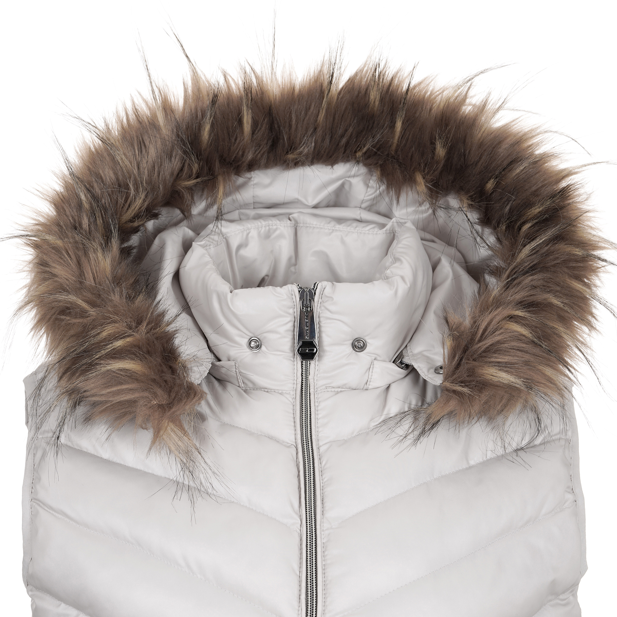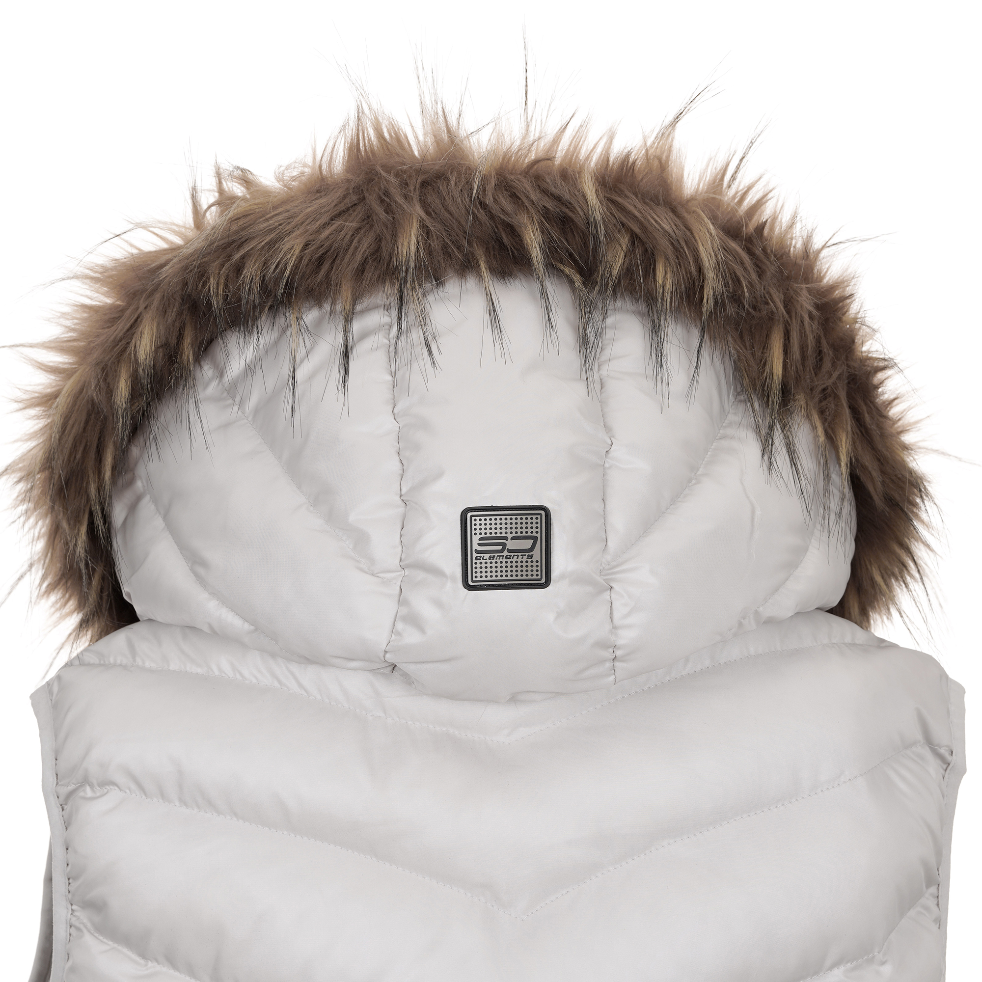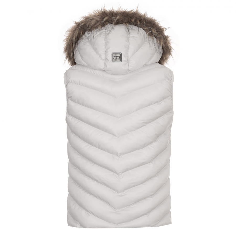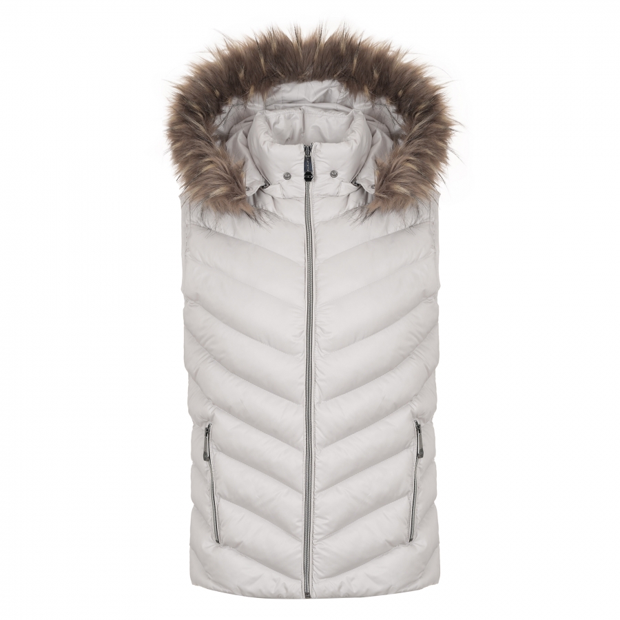 Дамски елек подходящ за всеки сезон,качулката с еко пух се маха и елека може да се носи и в по-топло време.Пълнеж силиконова вата.