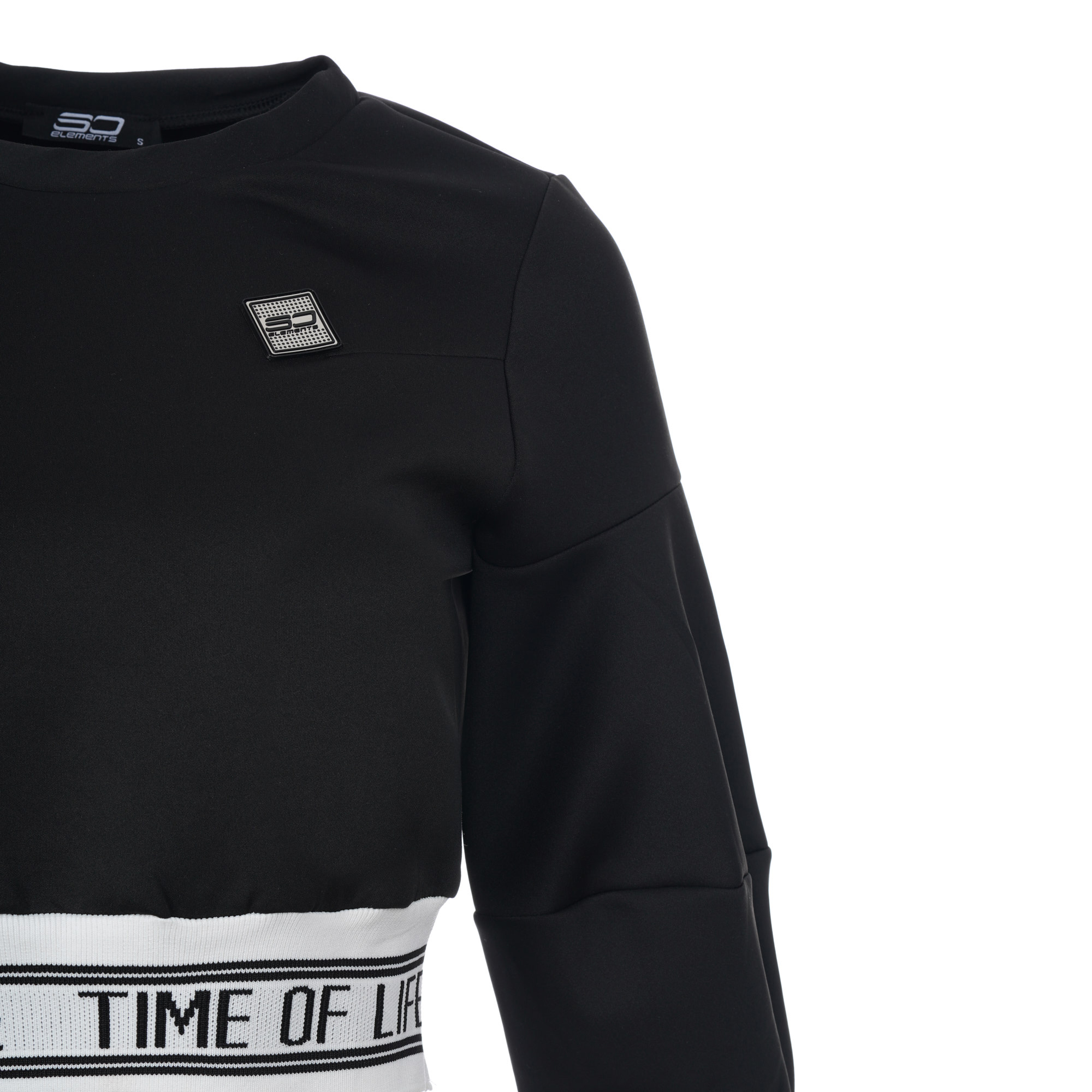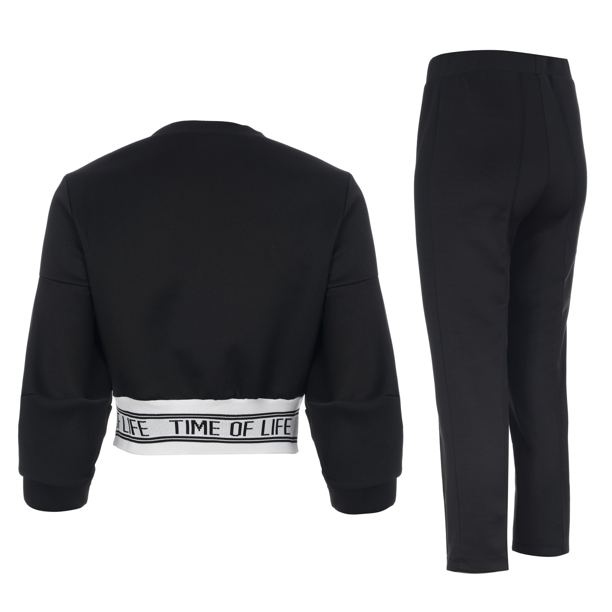 При пране изсъхва бързо и ви пести много време.Панталона е с дължина 7/8  ,с висока талия и ръб.Къса блуза с широк колан и с 3 /4 буфан ръкав.