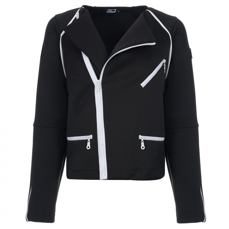 И едно доста раздвижено дамско яке с ципове в контрастен цвят и закопчаване диагонал.Свободен раздвижен силует.