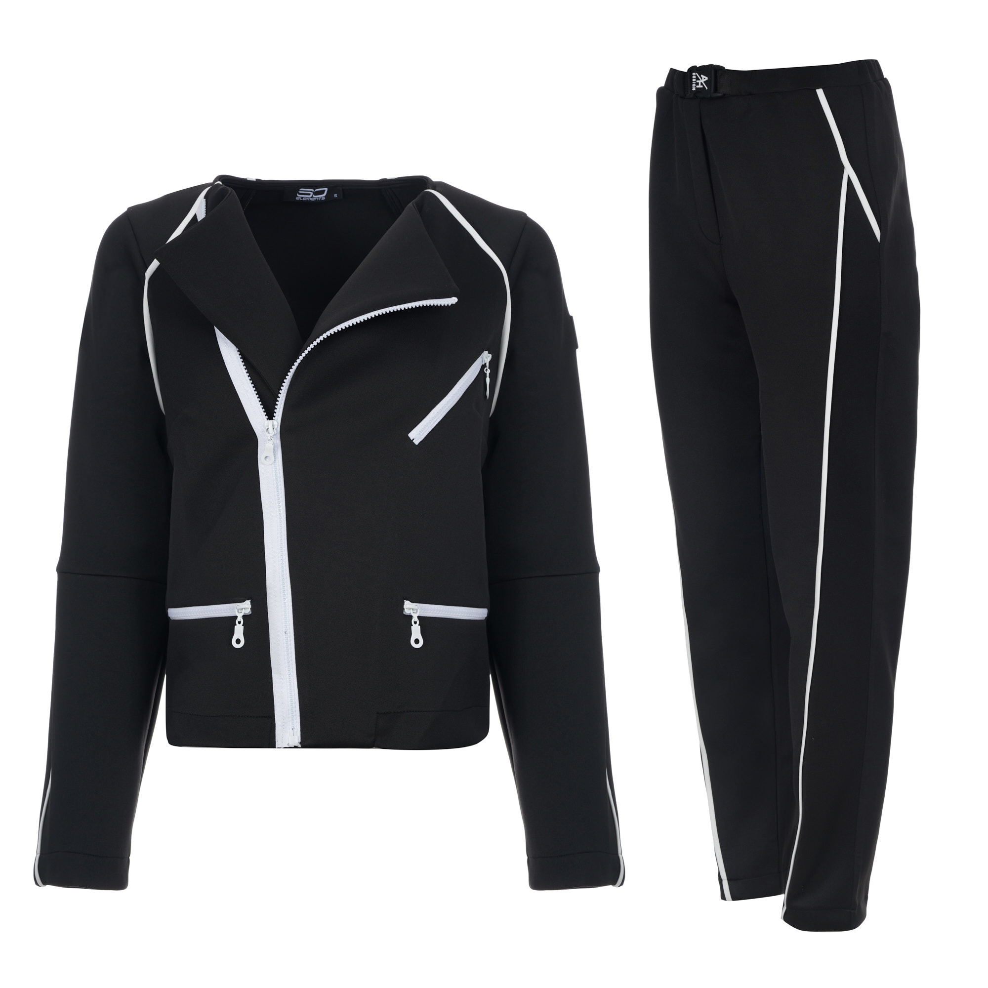 Дамски полиестерен сет от две части.Дълъг панталон с ластик и гумена катарама,контрастни акценти.