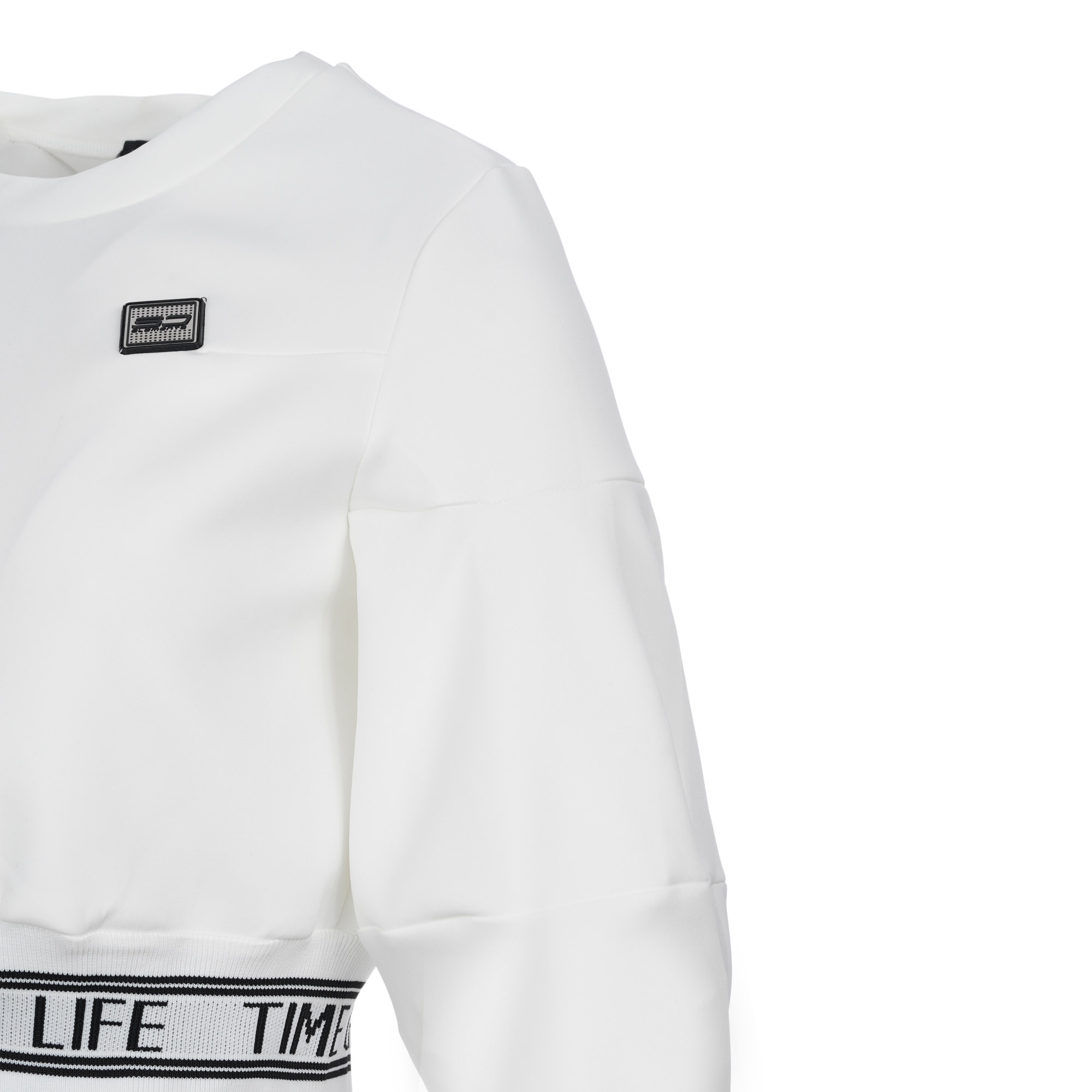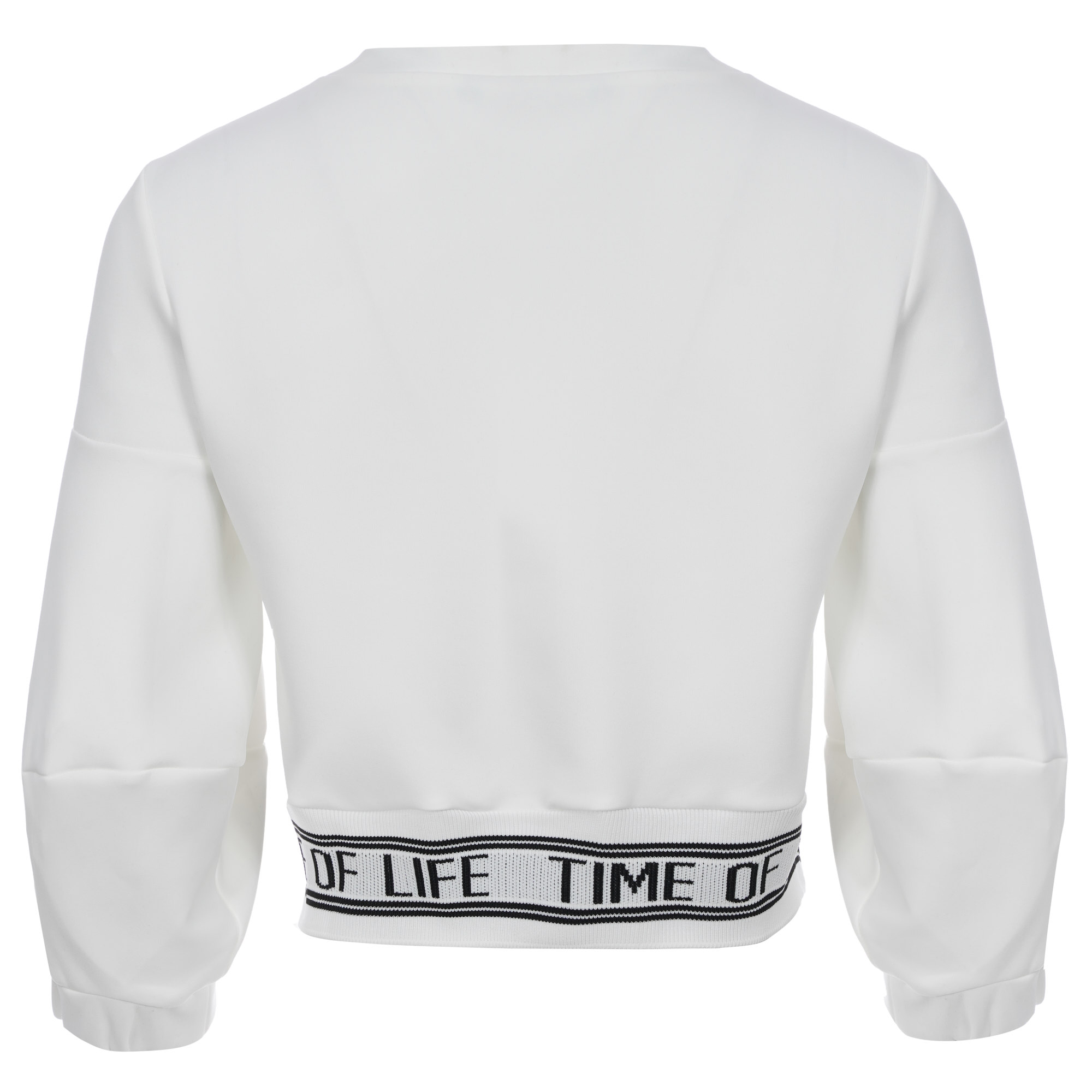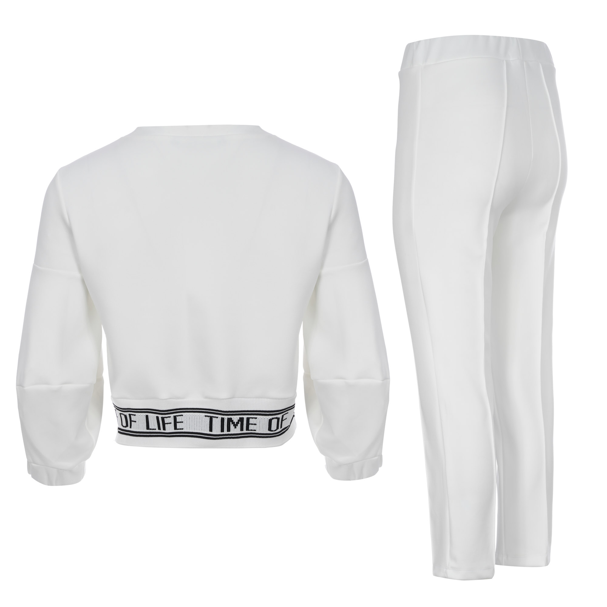 При пране изсъхва бързо и ви пести много време.Панталона е с дължина 7/8  ,с висока талия и ръб.Къса блуза с широк колан и с 3 /4 буфан ръкав.