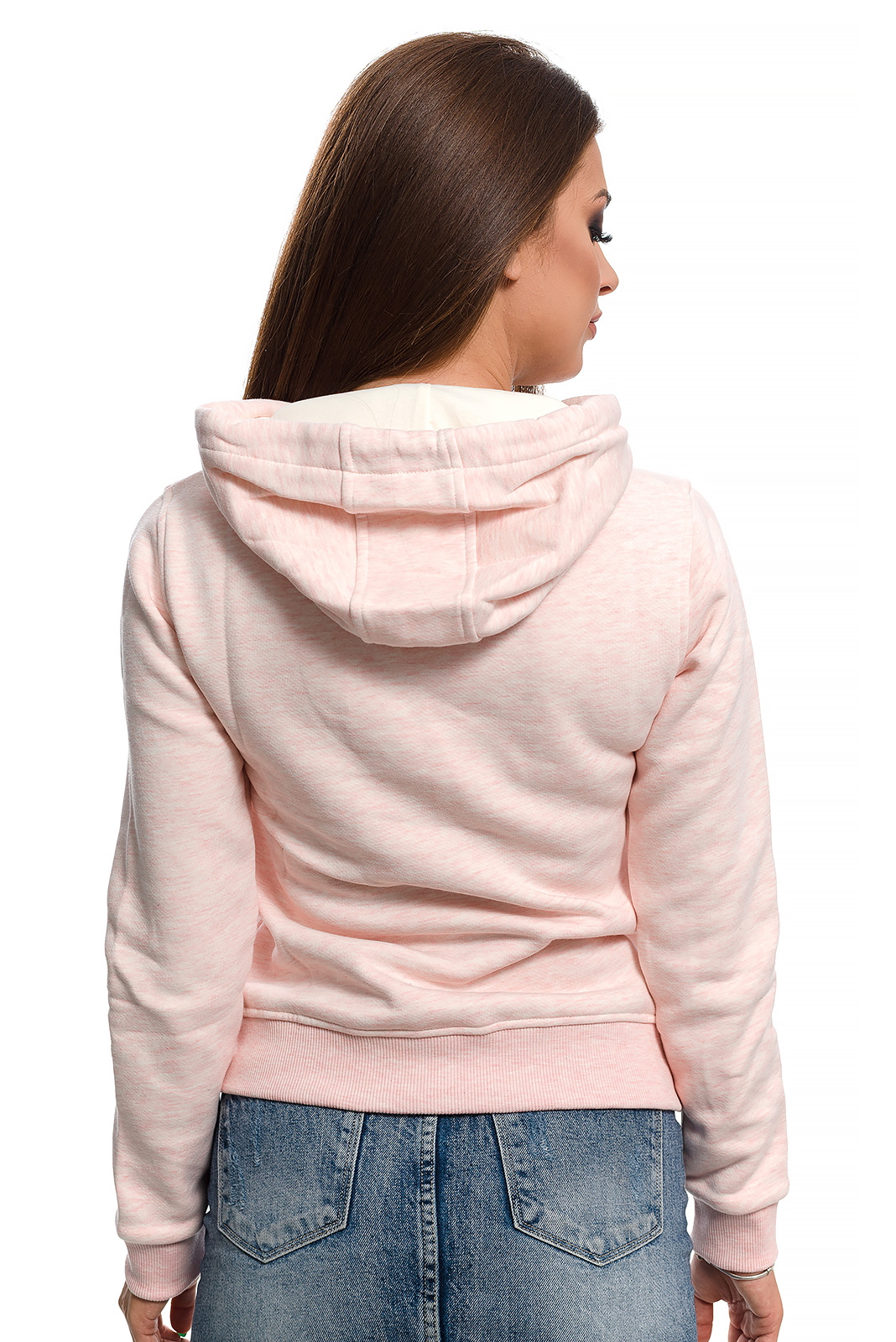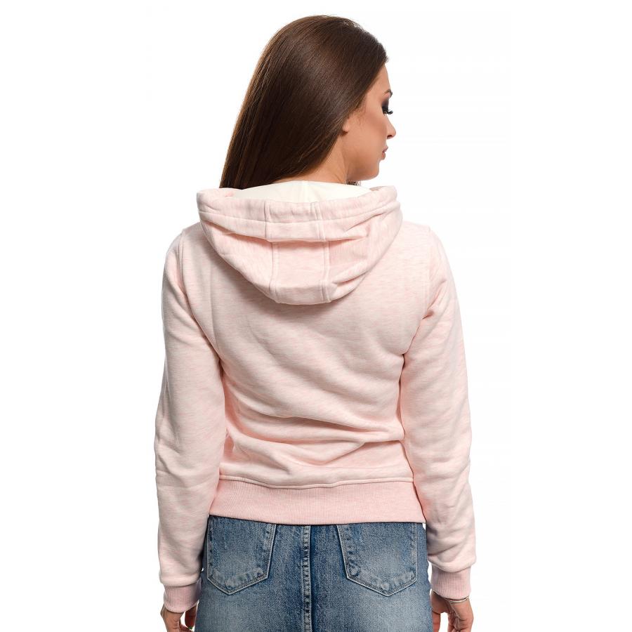 Дамски суитшърт от 100% cotton.Мека и топла,ватирана материя подходяща за зимните месеци.Голямо лого,регулируема качулка,преден джоб тип “ кенгуру“
