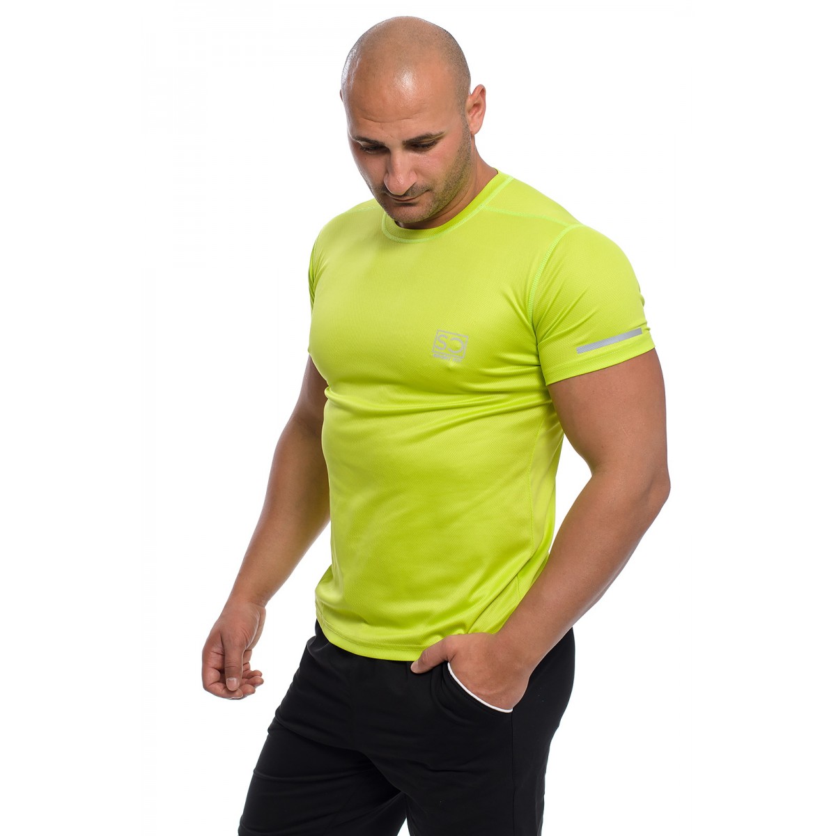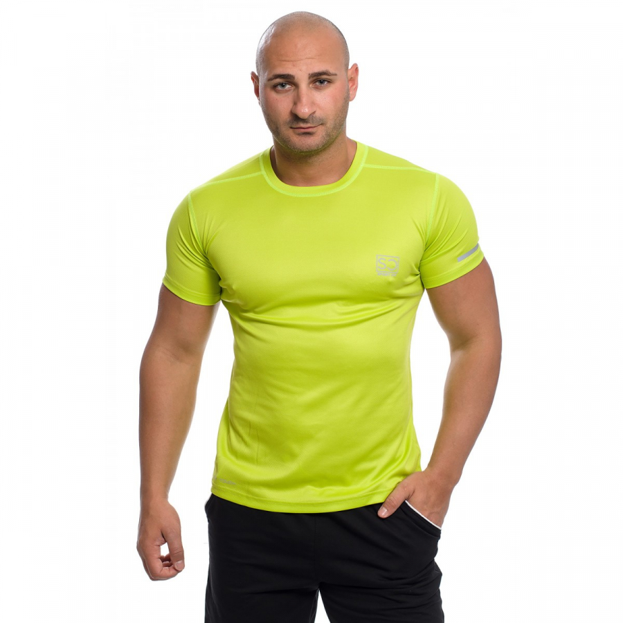 В левия ръкав има отразяваща лента, която отличава спортиста при слаба светлина. Фината материя описва мъжката гърда и корема и това кара човек да се чувства уверен в своята уникалност.