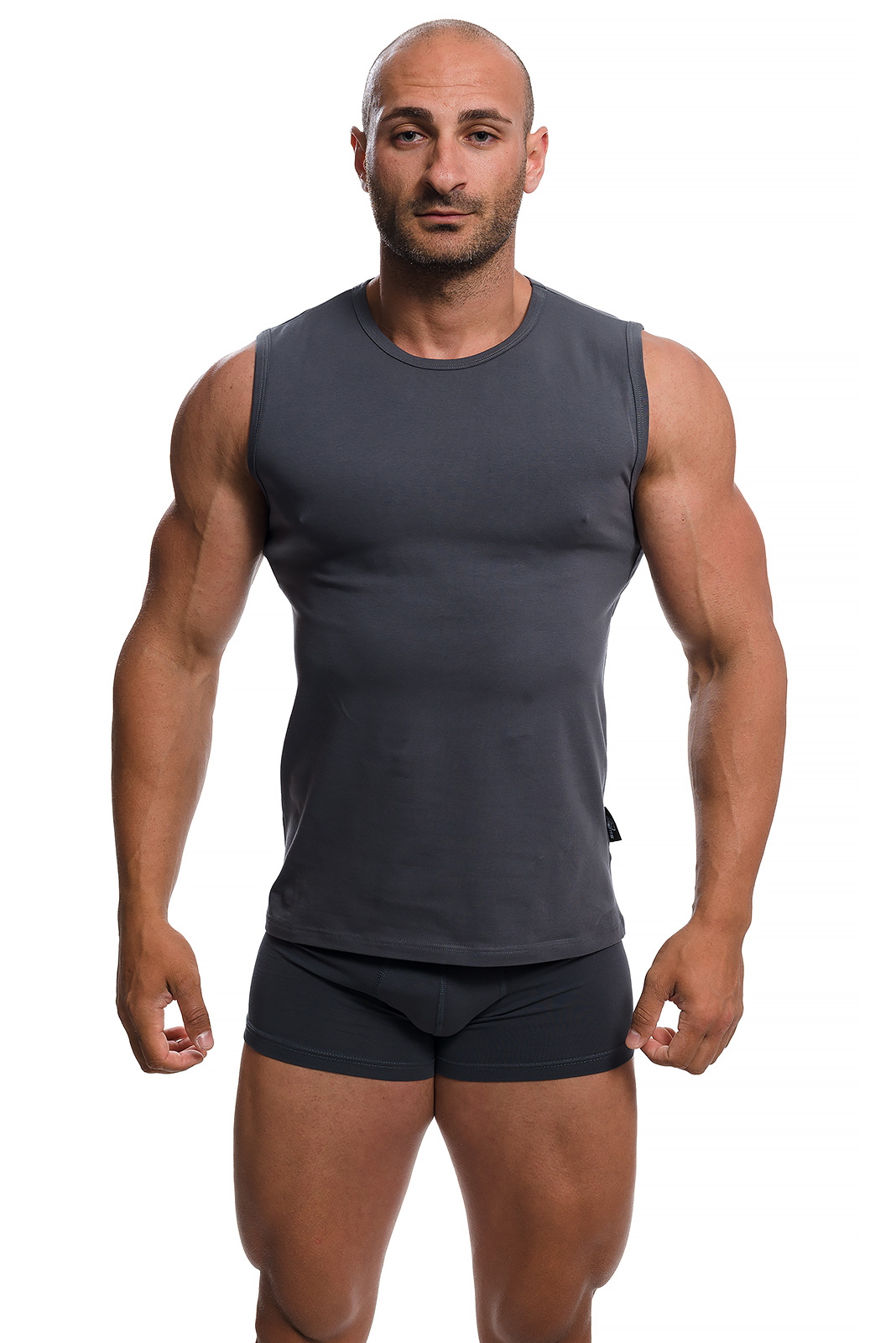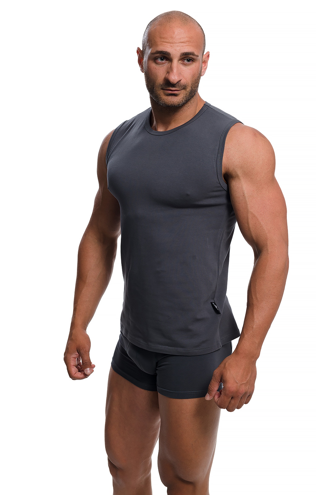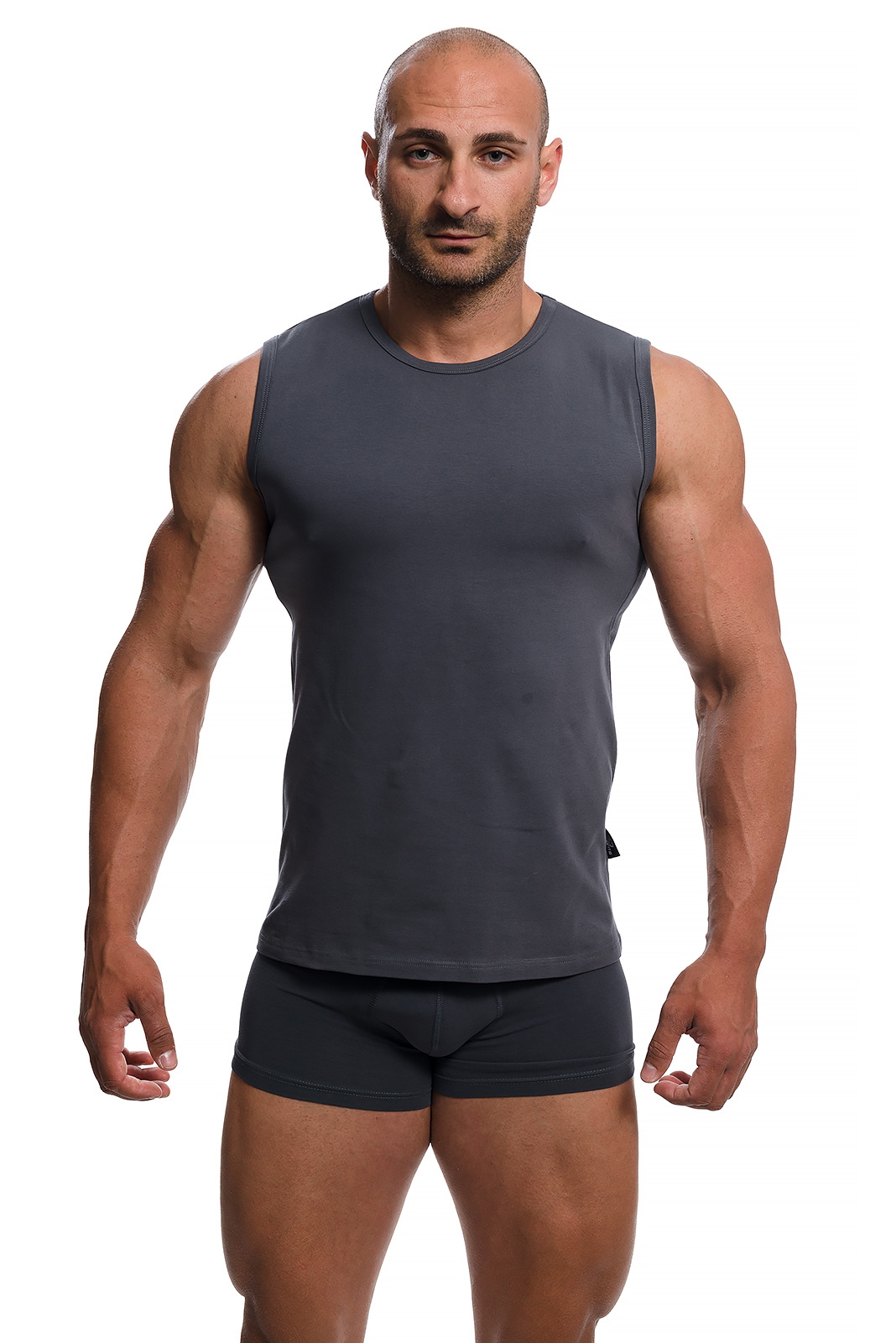 Семпла,изчистена,но елегантна мъжка тениска без ръкави, slim fit  модел,подходяща за носене под всяка дреха.Удобна за носене под дрехите през зимата и като самостоятелна дреха по време на спорт или в ежедневието.В състава на материята влизат памук и ликра,комбинира се с всякакъв вид дрехи и се поддържа лесно.Не запарва! ! Може да се комбинира с мъжки боксер от същия цват и материя.