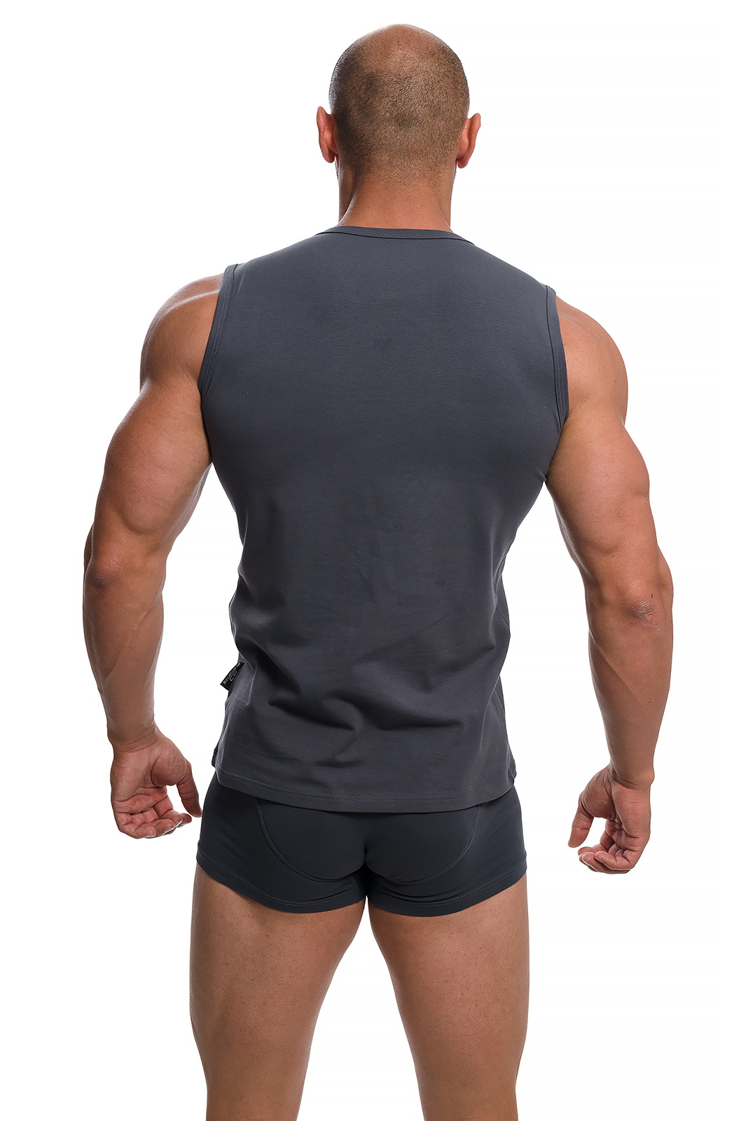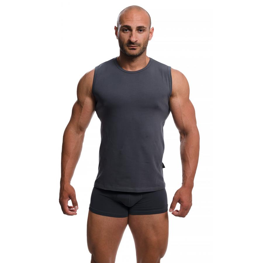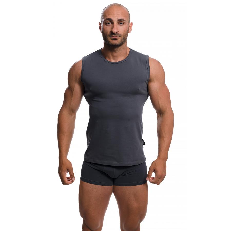 Семпла,изчистена,но елегантна мъжка тениска без ръкави, slim fit  модел,подходяща за носене под всяка дреха.Удобна за носене под дрехите през зимата и като самостоятелна дреха по време на спорт или в ежедневието.В състава на материята влизат памук и ликра,комбинира се с всякакъв вид дрехи и се поддържа лесно.Не запарва! ! Може да се комбинира с мъжки боксер от същия цват и материя.