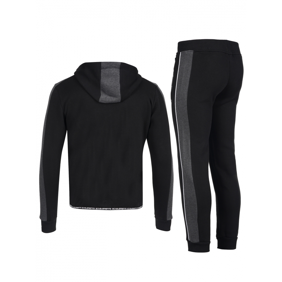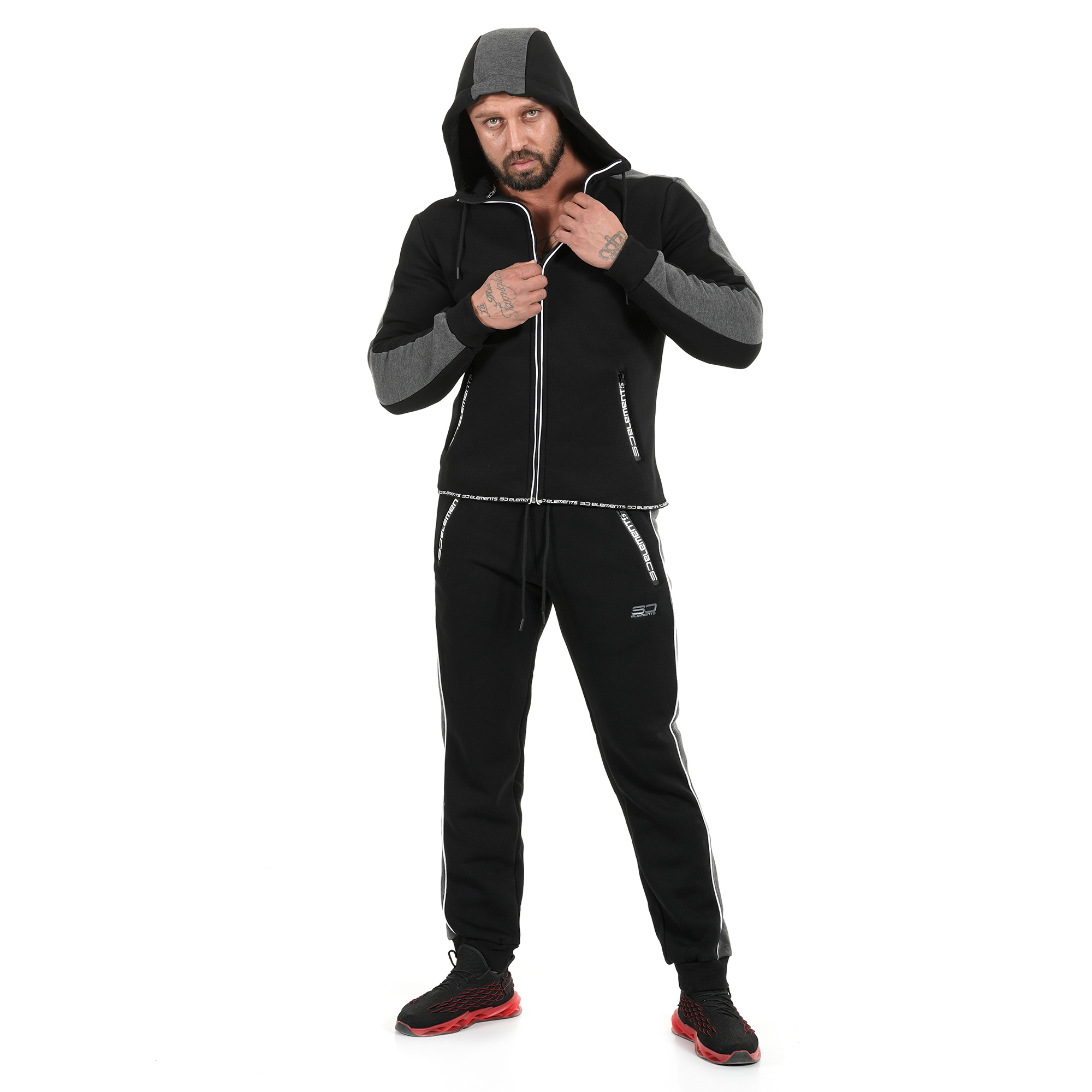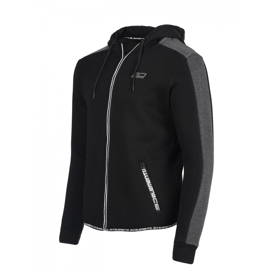 Екипа е с водоустойчиви ципове на горницата и долнището,брандирани ластици и голяма качулка с връзки.
