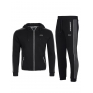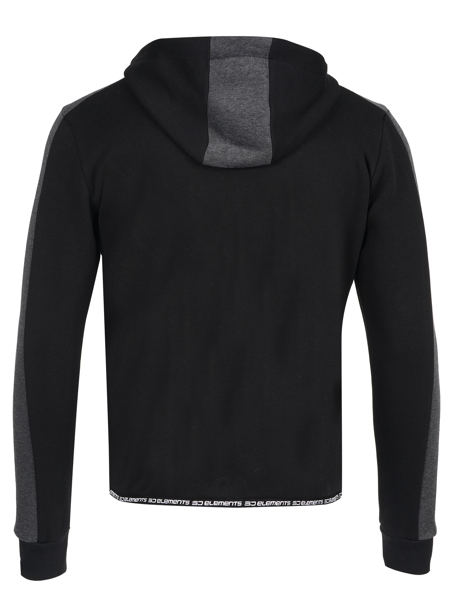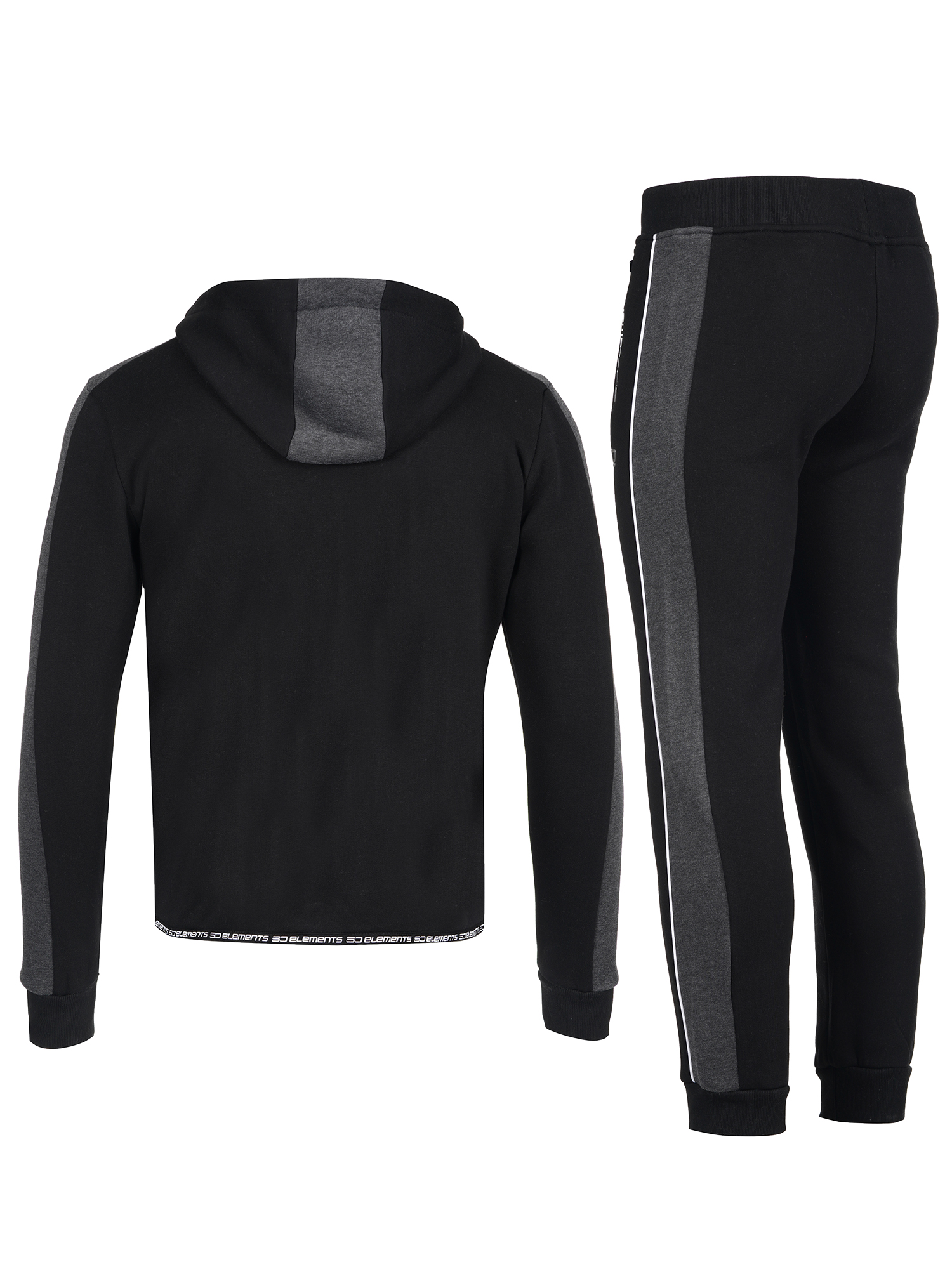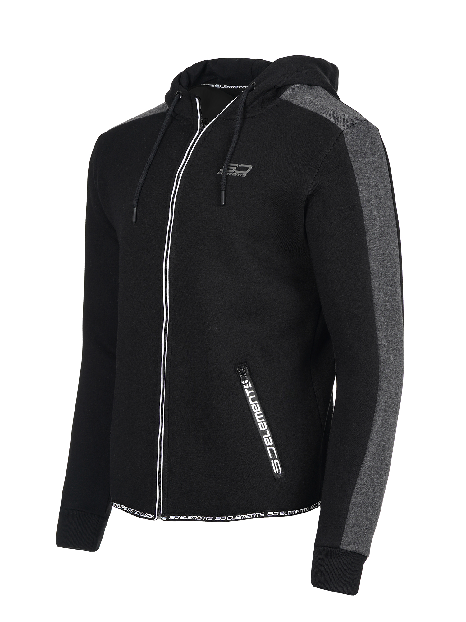 Екипа е с водоустойчиви ципове на горницата и долнището,брандирани ластици и голяма качулка с връзки.