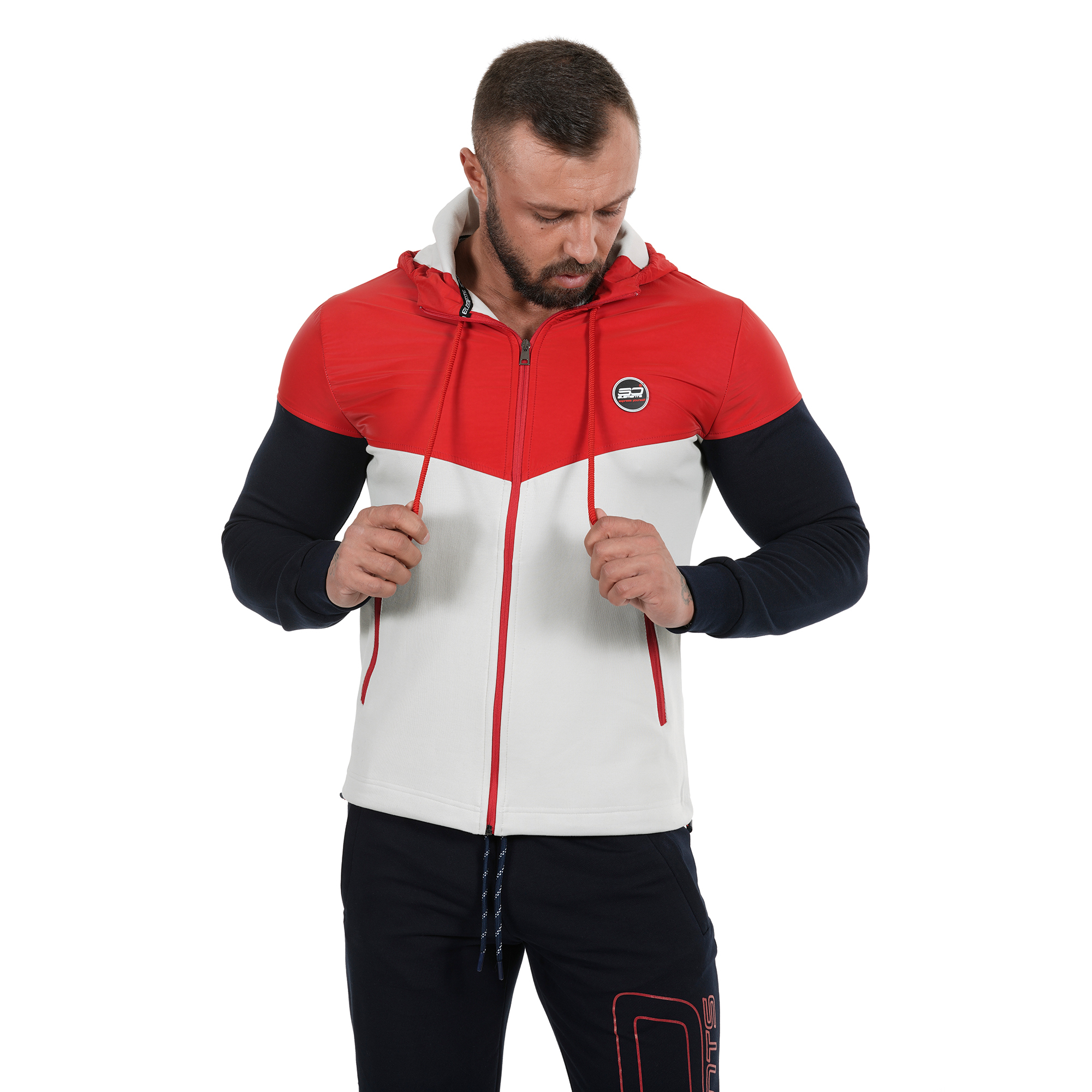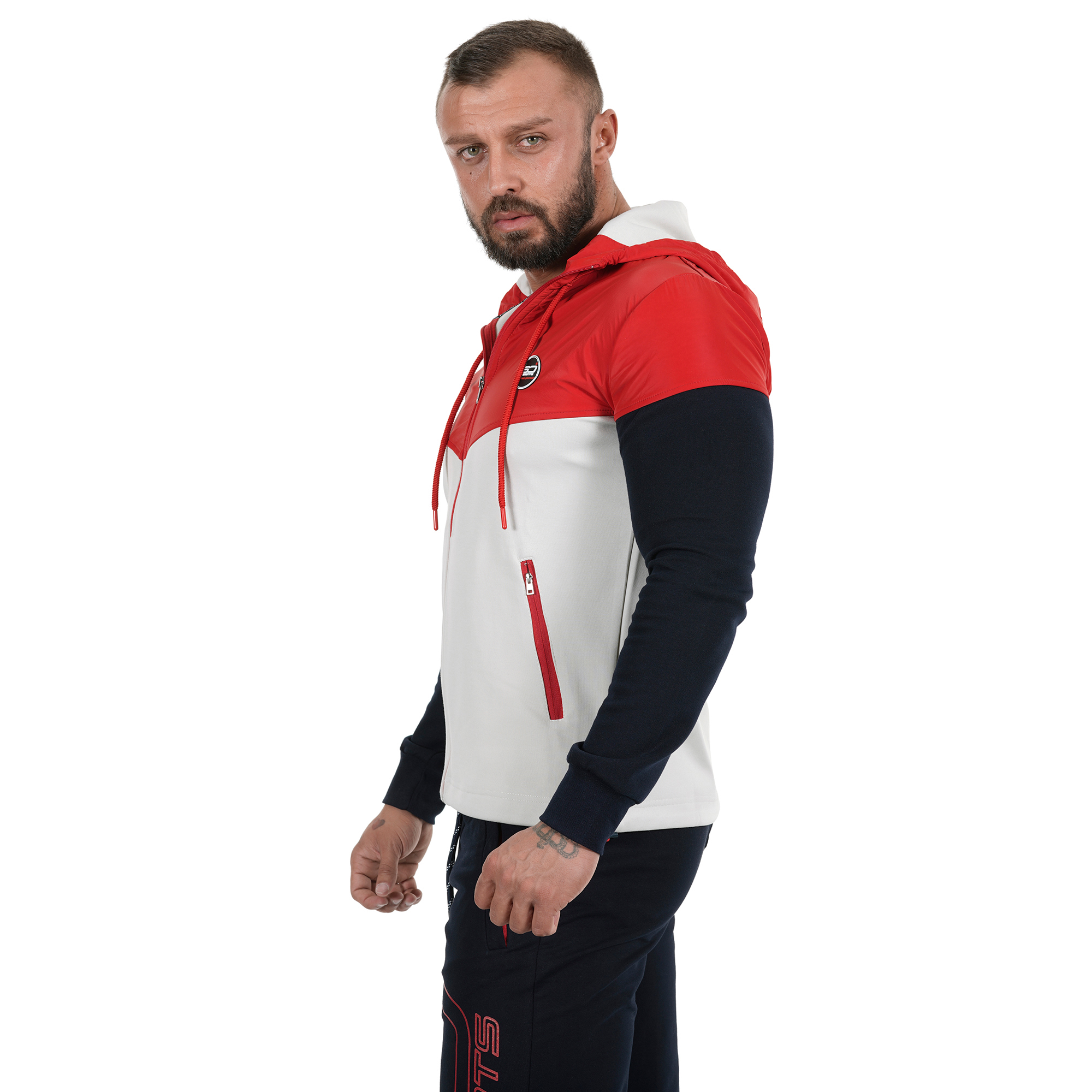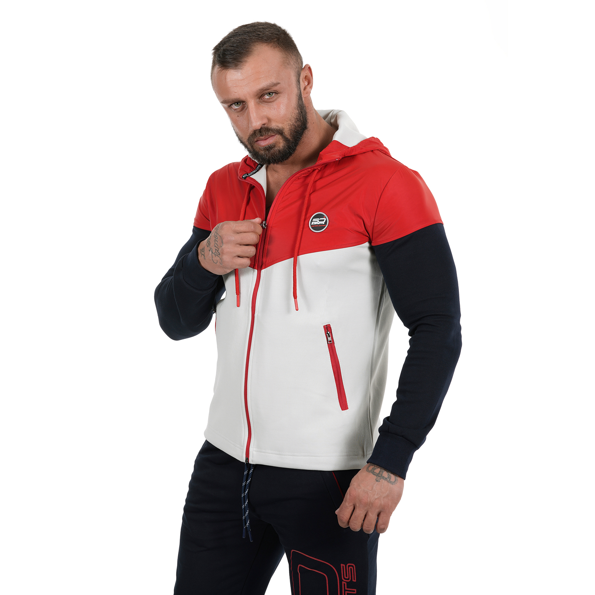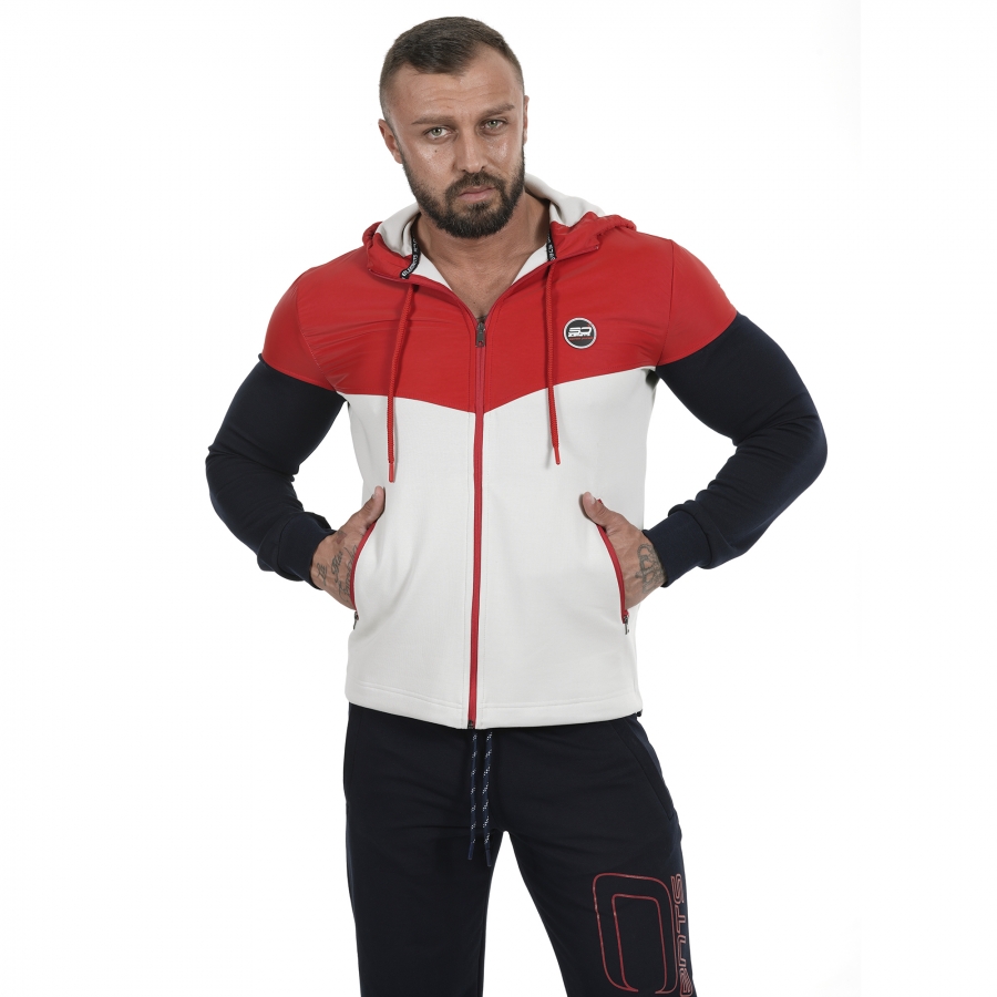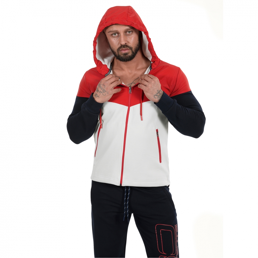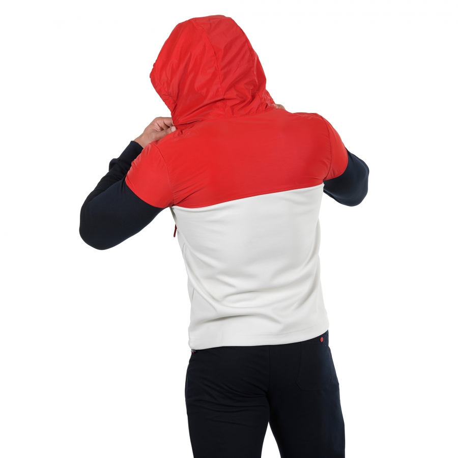 Мъжко спортно горнище подходщо за всеки сезон.В зависимост от метериологичните условия през съответния сезон и активността може да изберете какви дрехи да облечете под него.Използваните материи са double face и полиетилен от ново поколение.В горната си част материята е водоотблъскваща.
