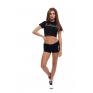 Дамски летен сет от панталонки и къса тениска с качулка, с ефектна релефна щампа.От колекцията - пролет/лято 2020г. на бранда SC-Elements.Скандален и провокативен летен сет от еластична комфортна за носене материя