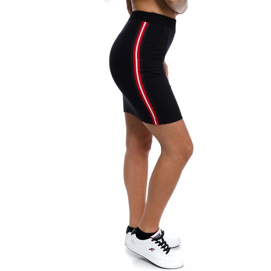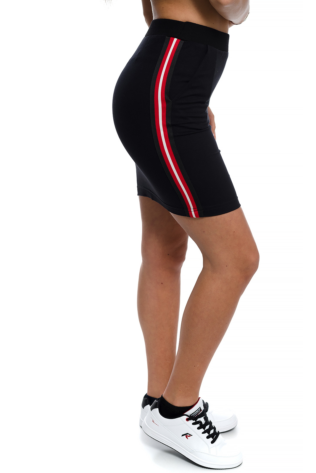 Спортна еластична пола от памук с ликра, с цветни ленти отстрани. Два странични джоба,ластичен колан.