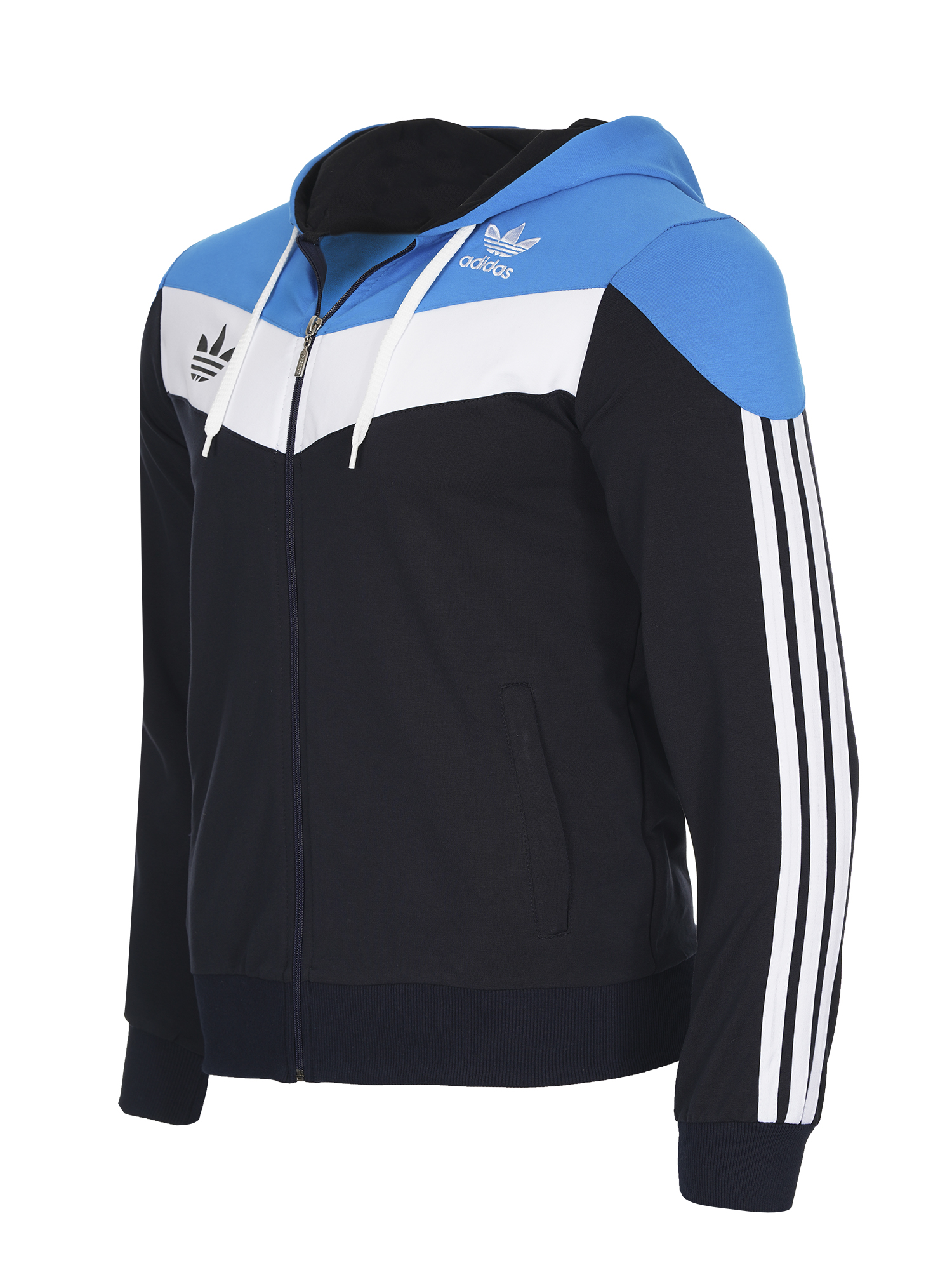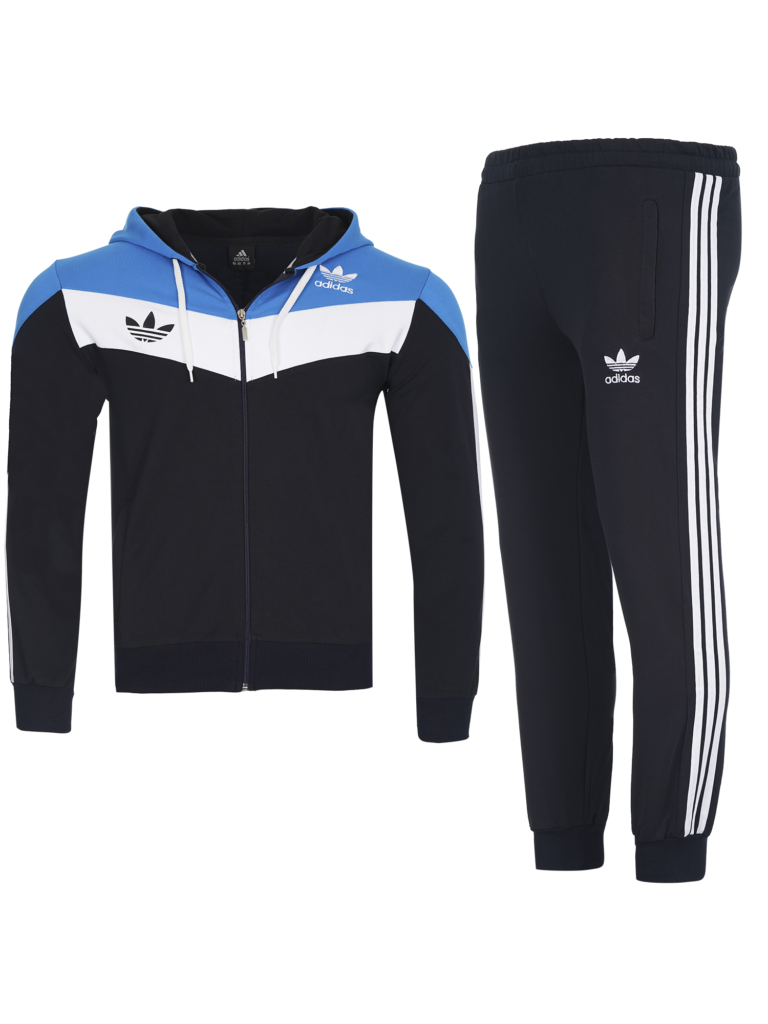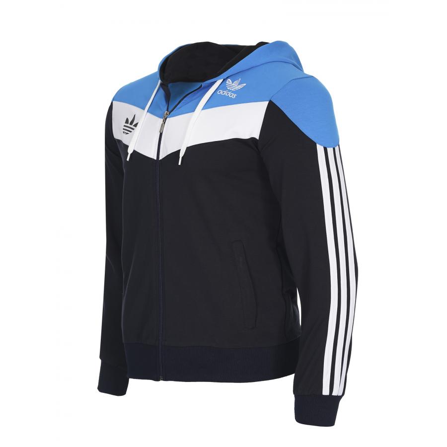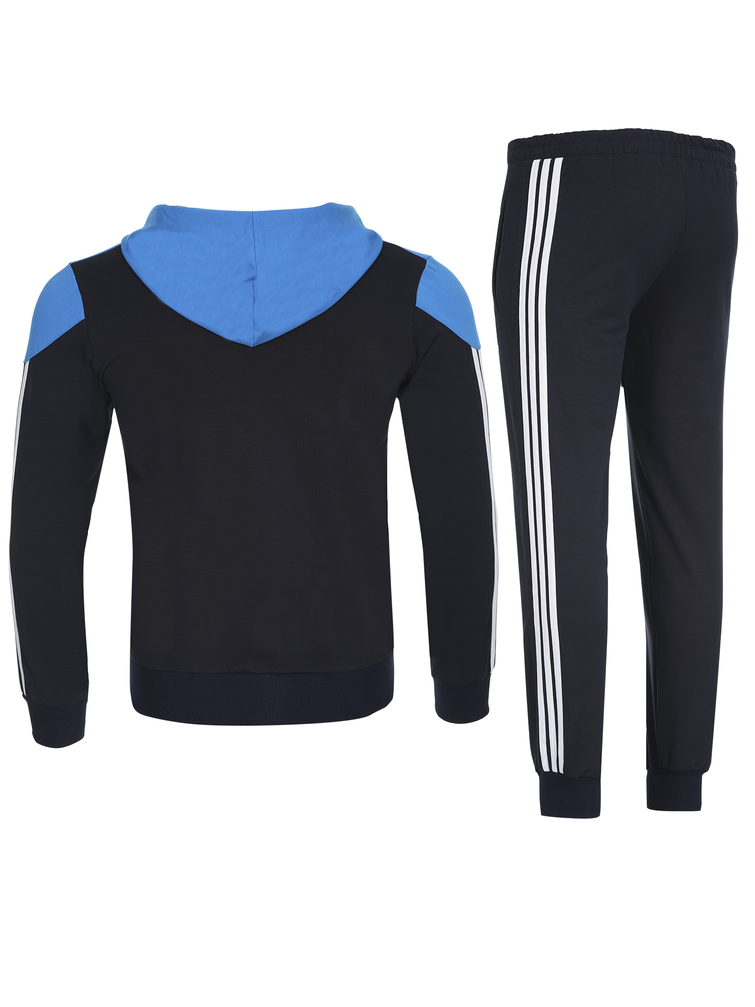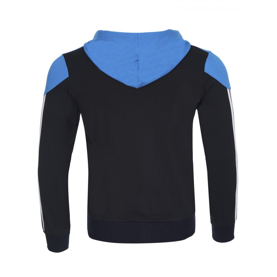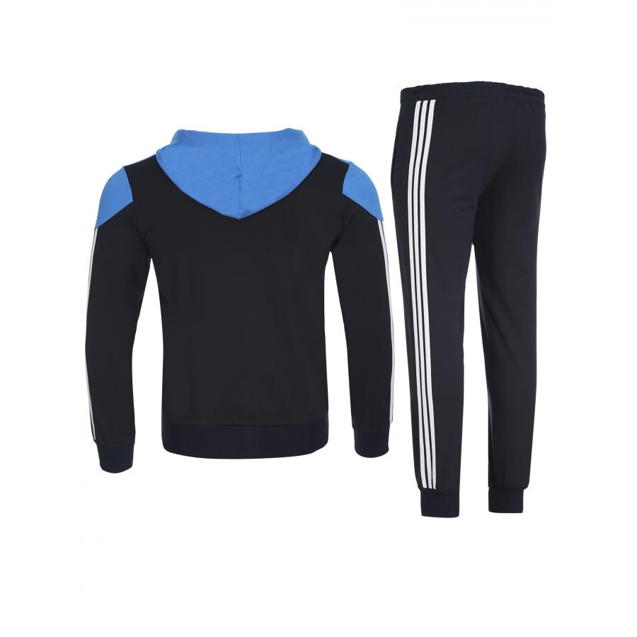 Екипа е изработен от памук с ликра,здрава и комфортна за носене материя.Закопчаването е с цип,има висока яка и качулка.Джобове с цип на горницата и долница,ластични маншети и колан.