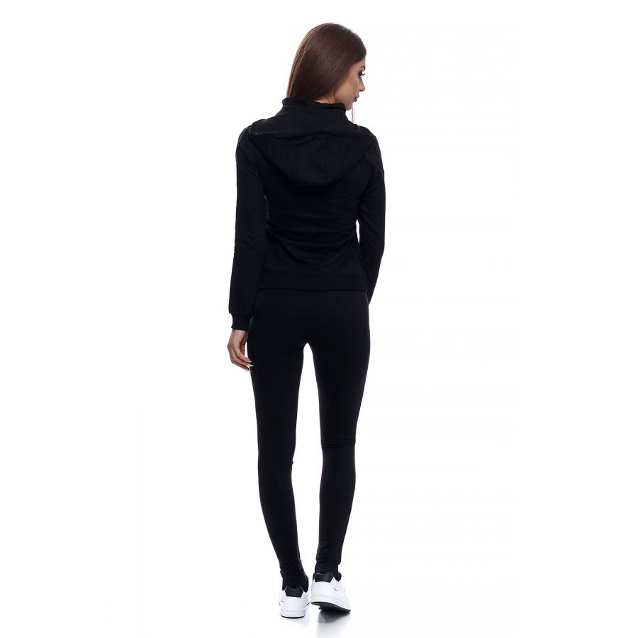Дамски памучен екип в семпъл изчистен модел, подходящ за спорт и ежедневие.Прилепнал силует с възможност да се носи с качулка или без.