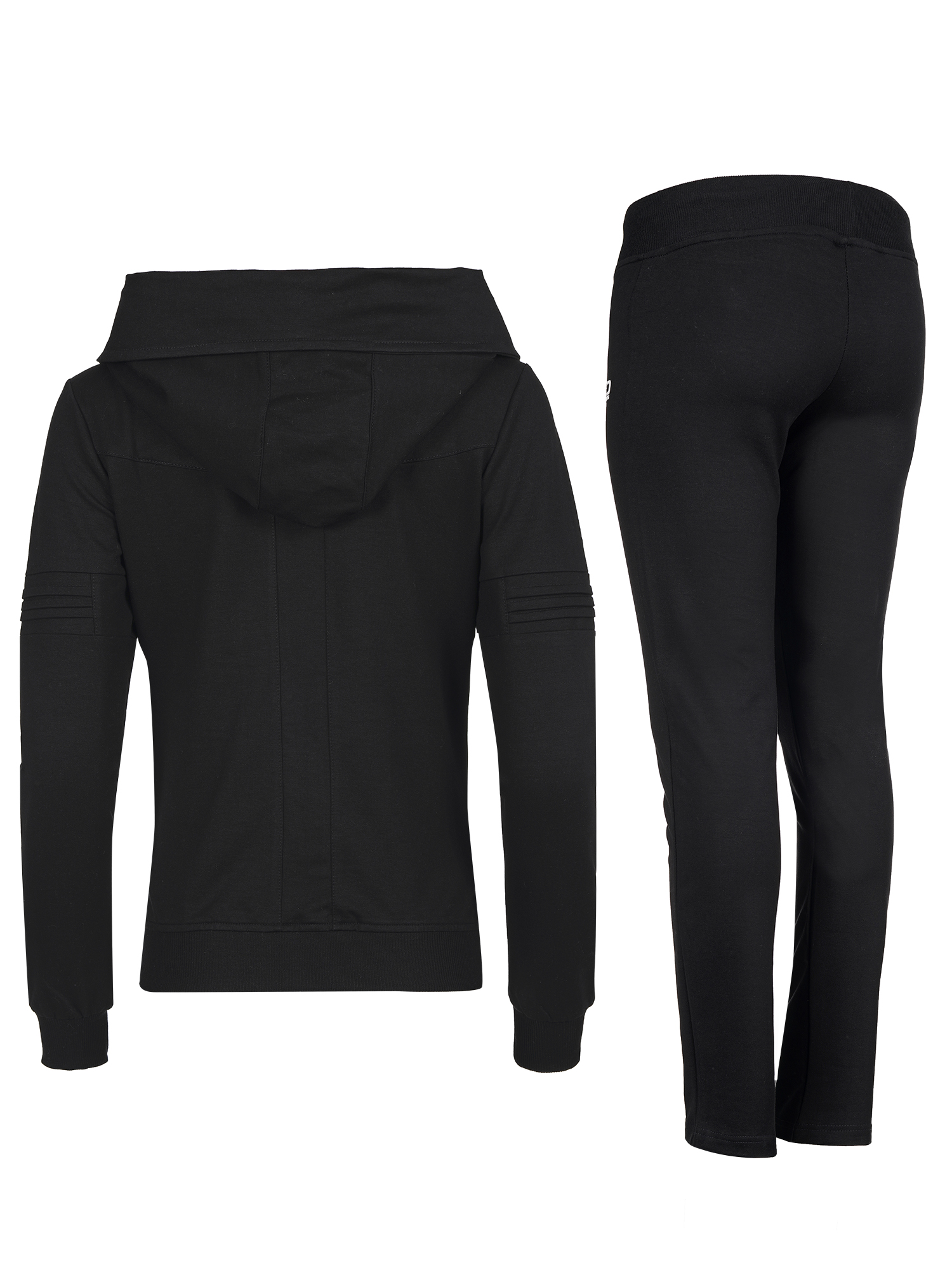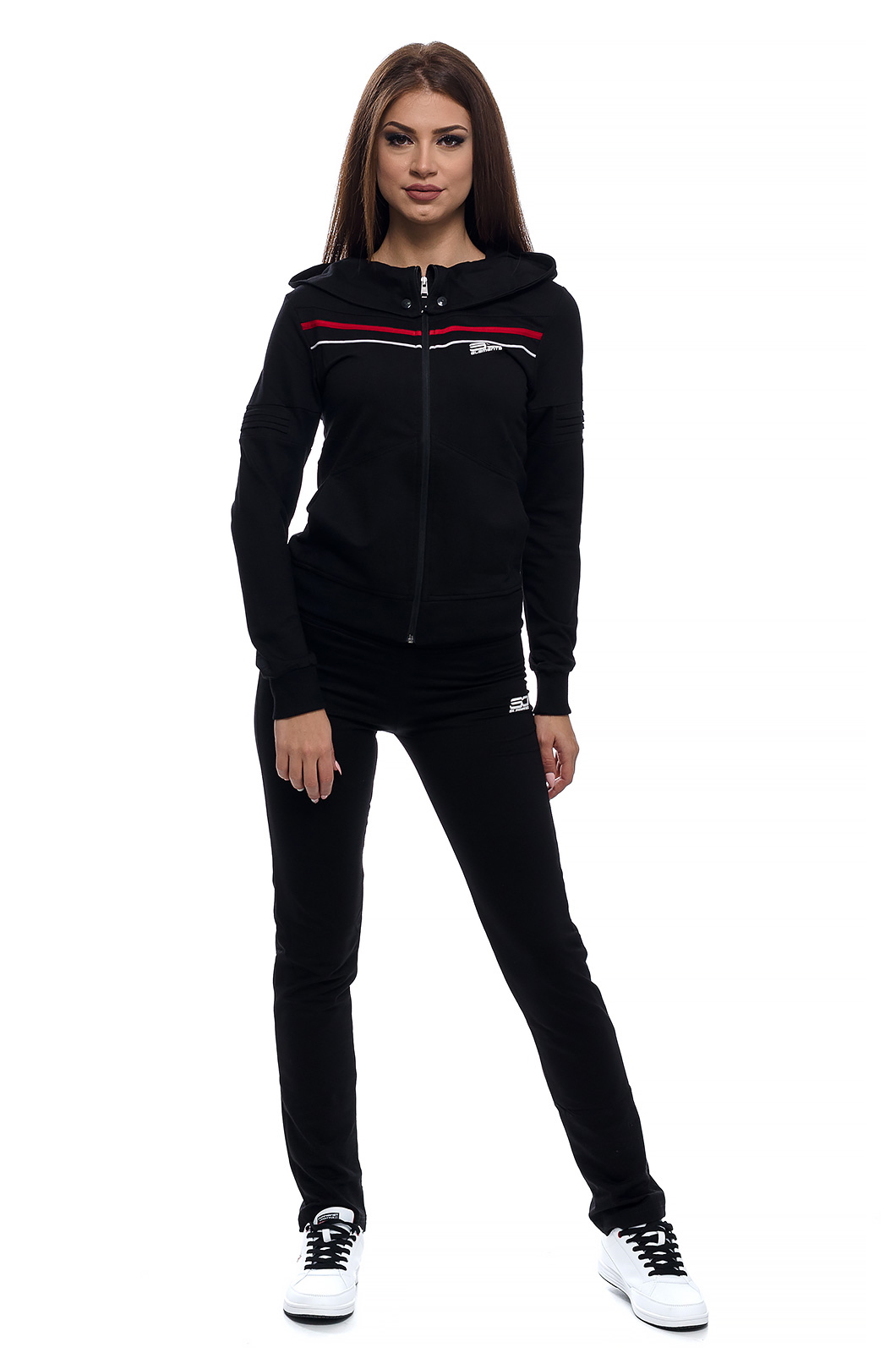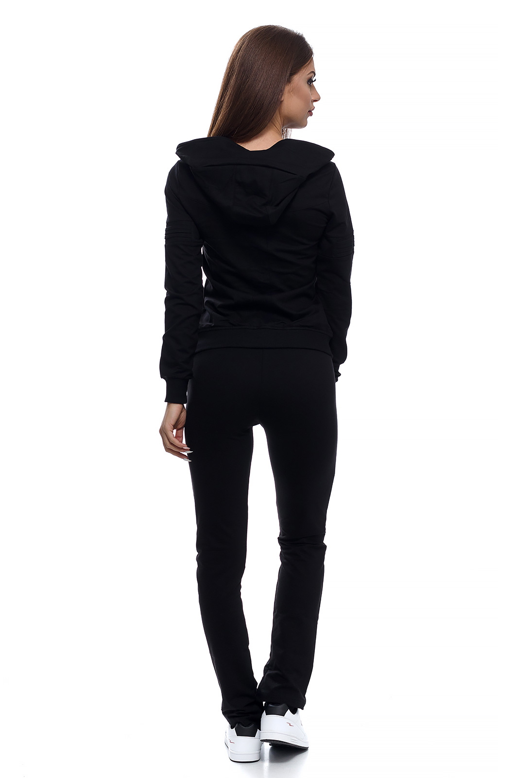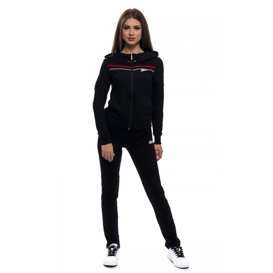 Дамски памучен екип с актуална визия, подходящ за спорт и ежедневие.С голяма качулка,трансформираща се в яка със закопчаване тип - тик так.