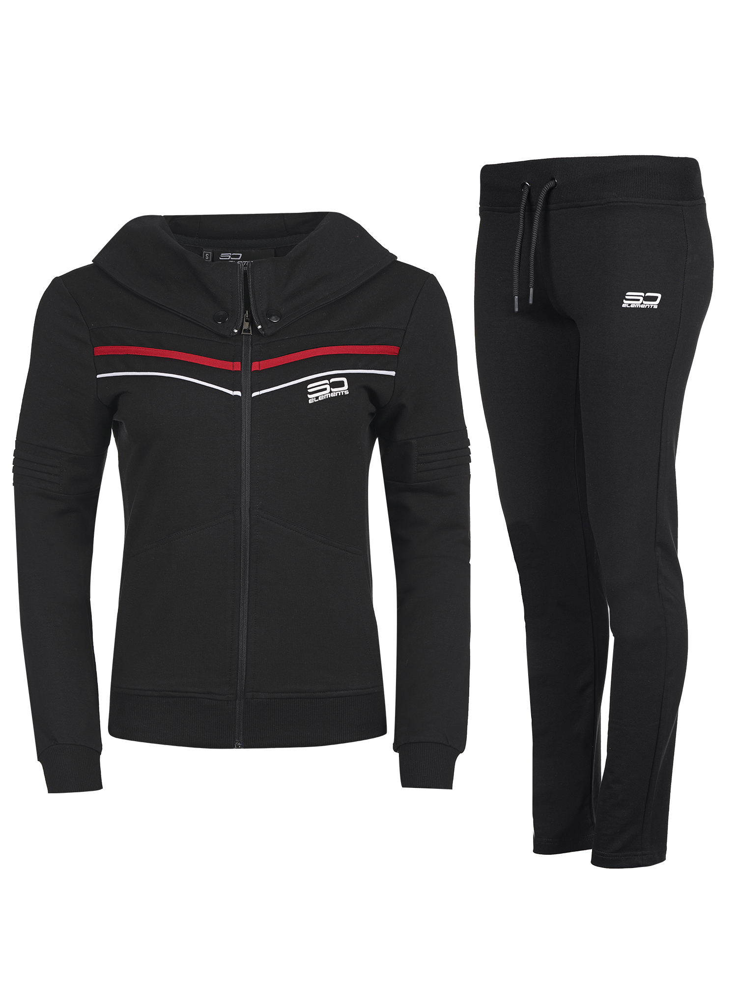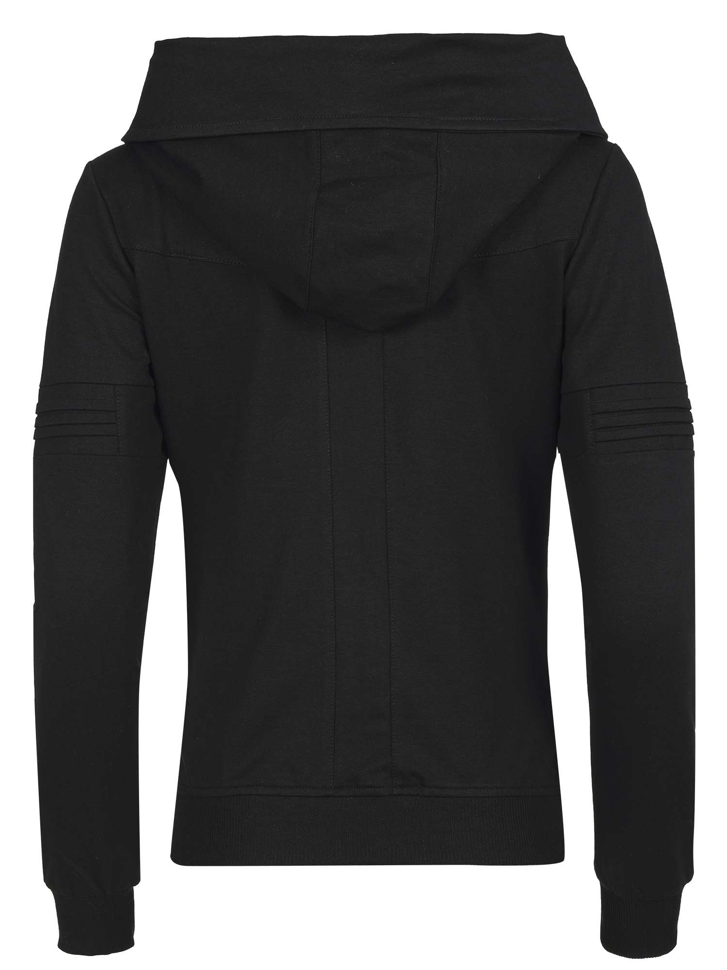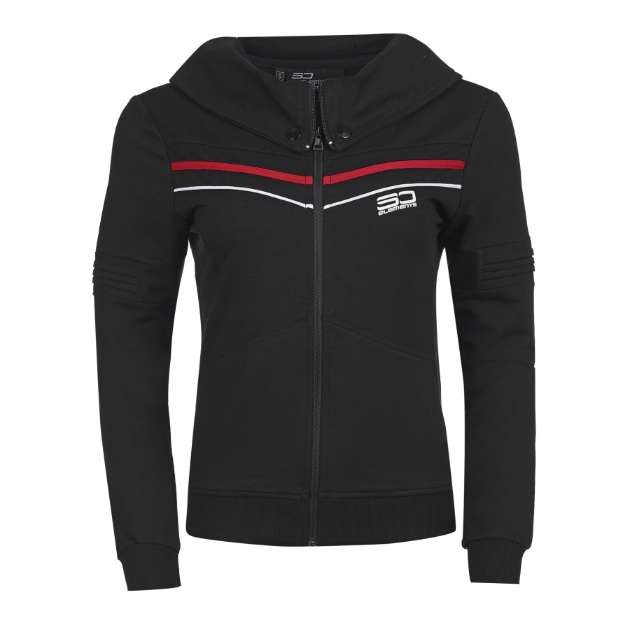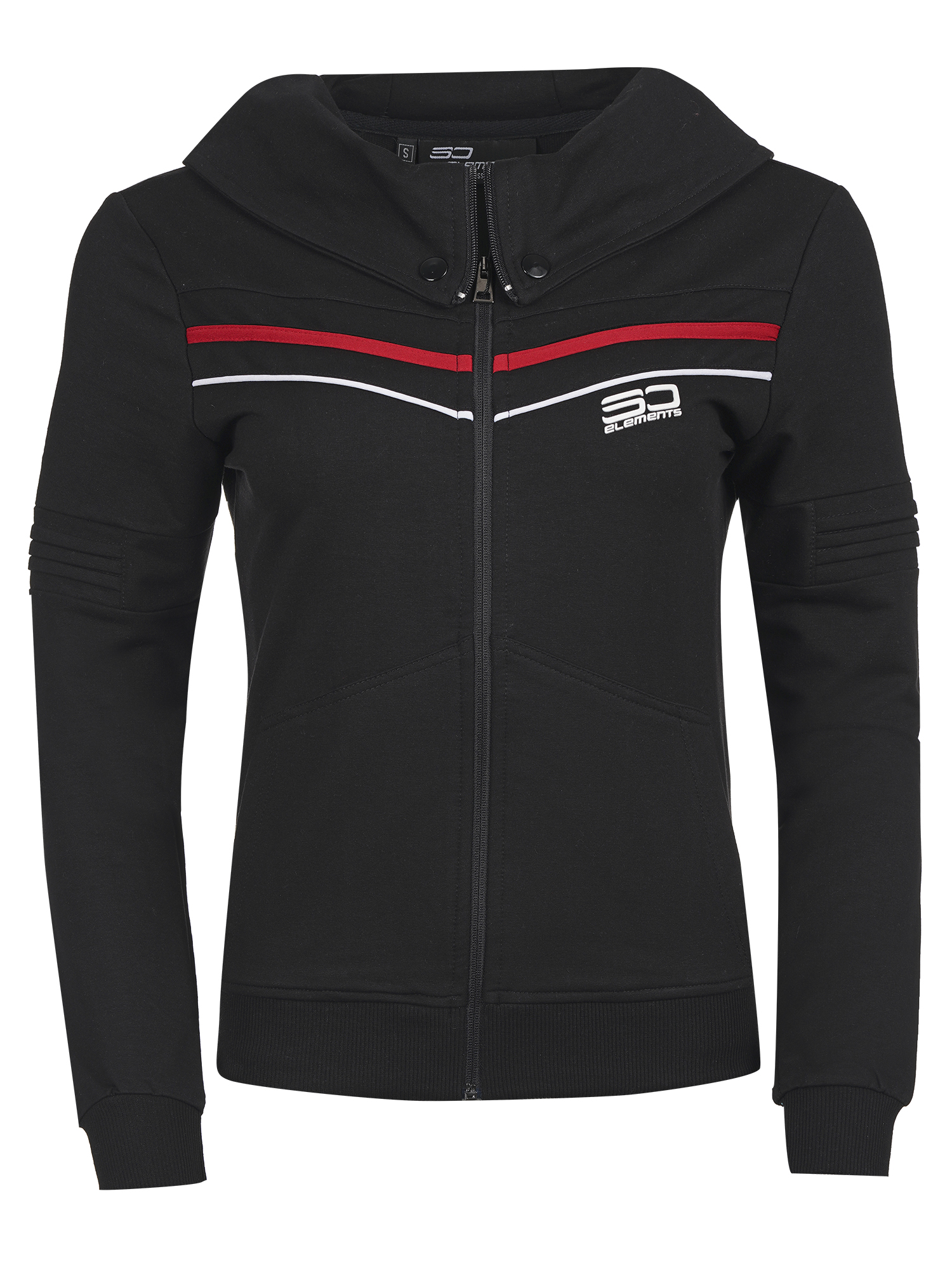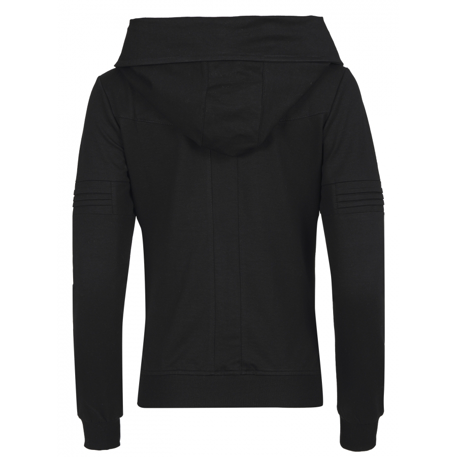 Дамски памучен екип с актуална визия, подходящ за спорт и ежедневие.С голяма качулка,трансформираща се в яка със закопчаване тип - тик так.