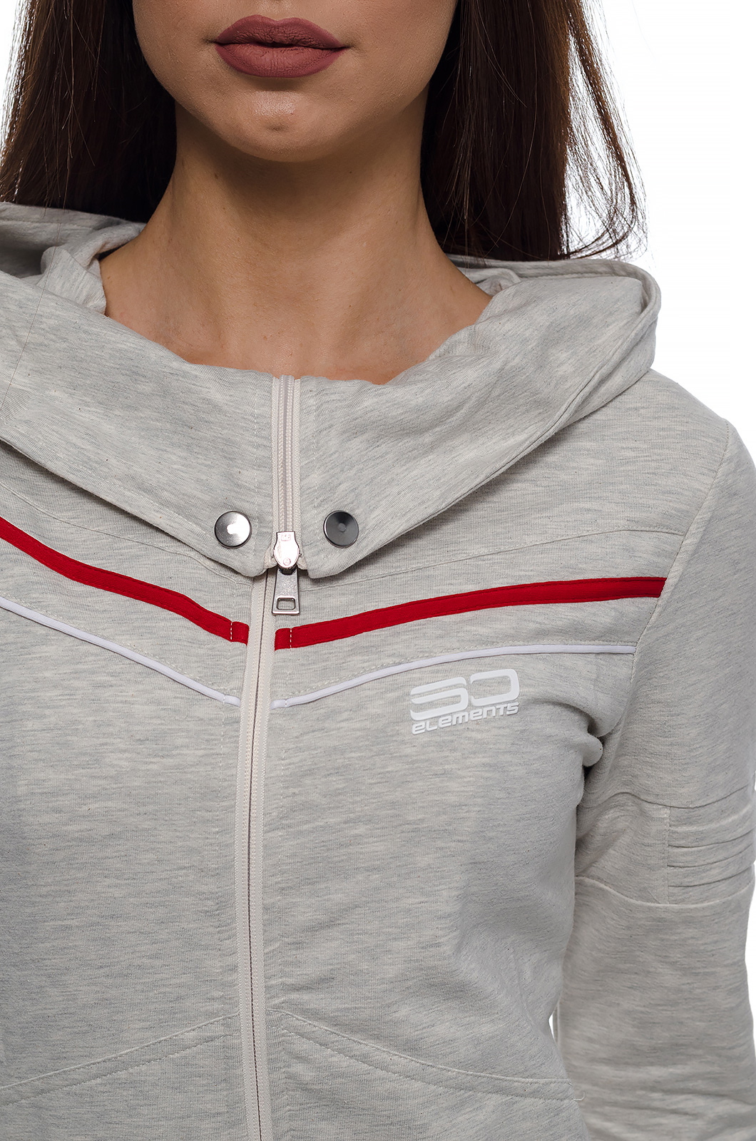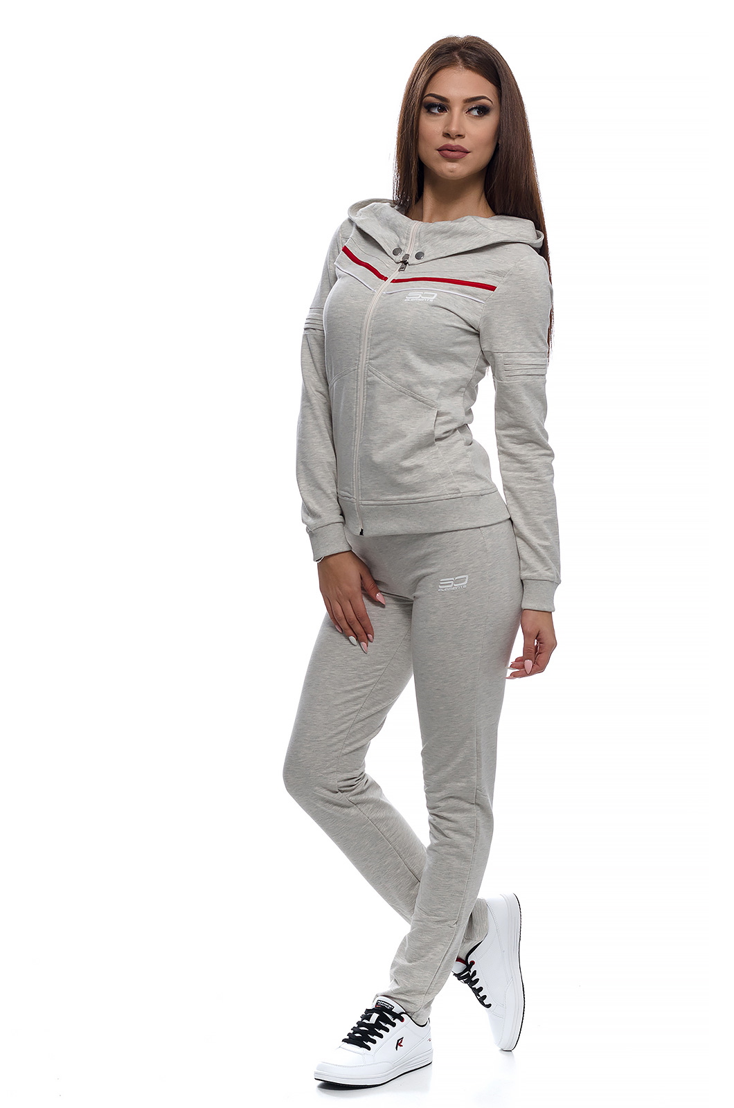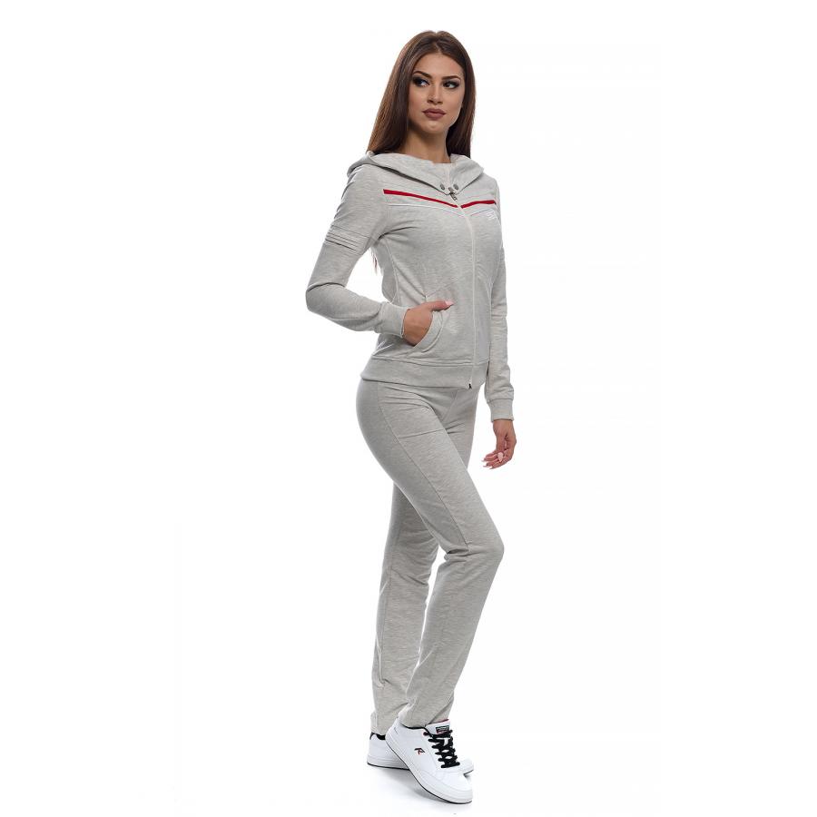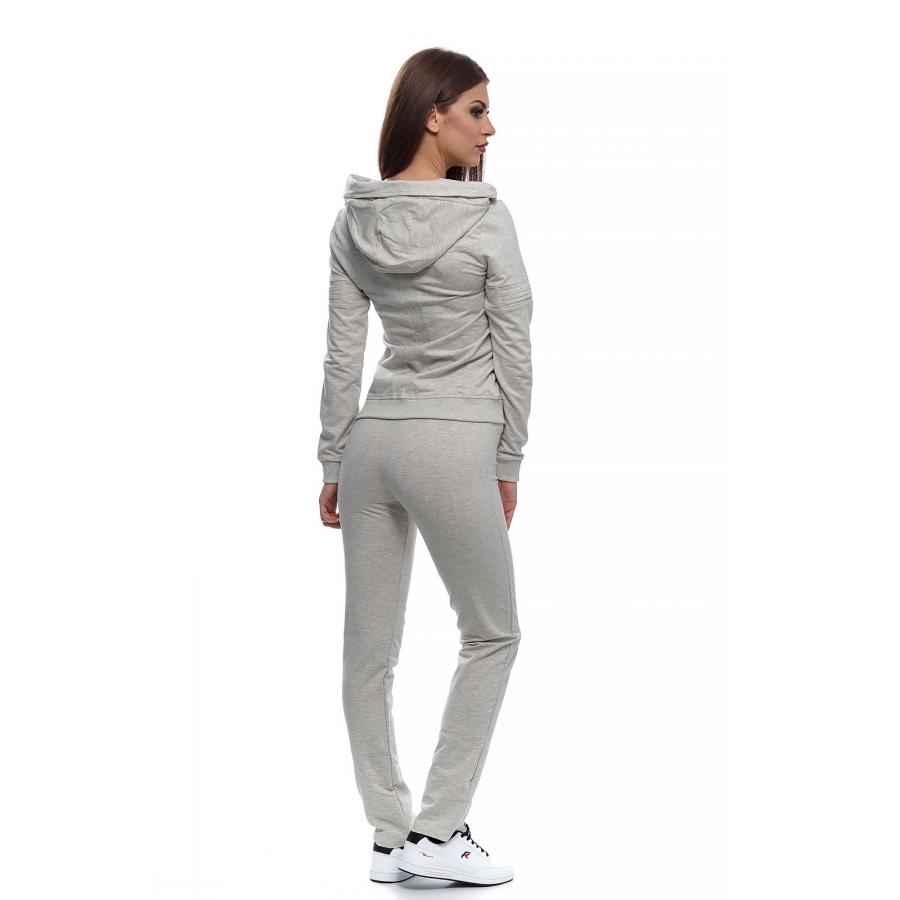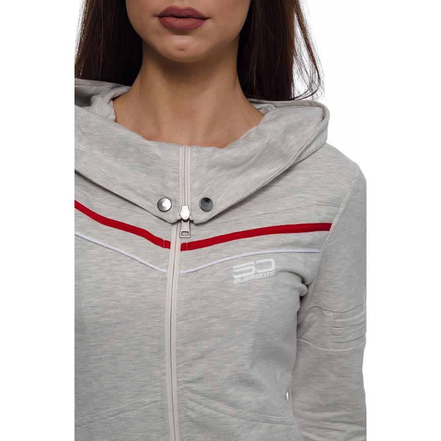 Дамски памучен екип с актуална визия, подходящ за спорт и ежедневие.С голяма качулка,трансформираща се в яка със закопчаване тип - тик так.