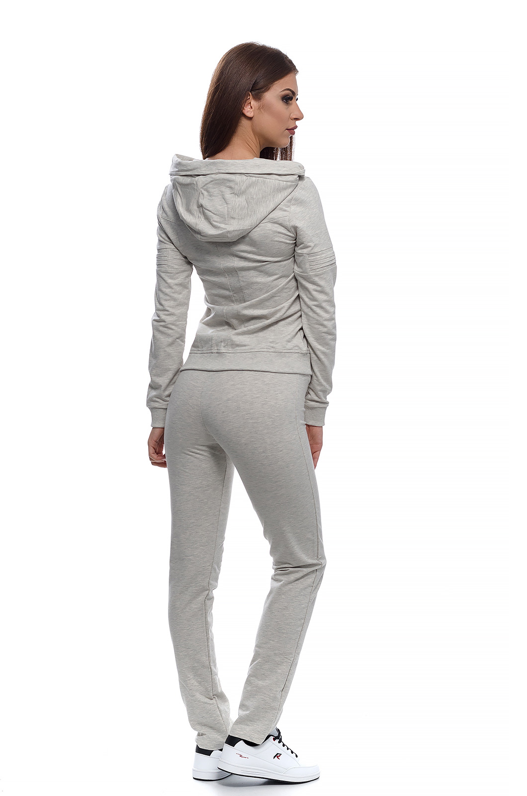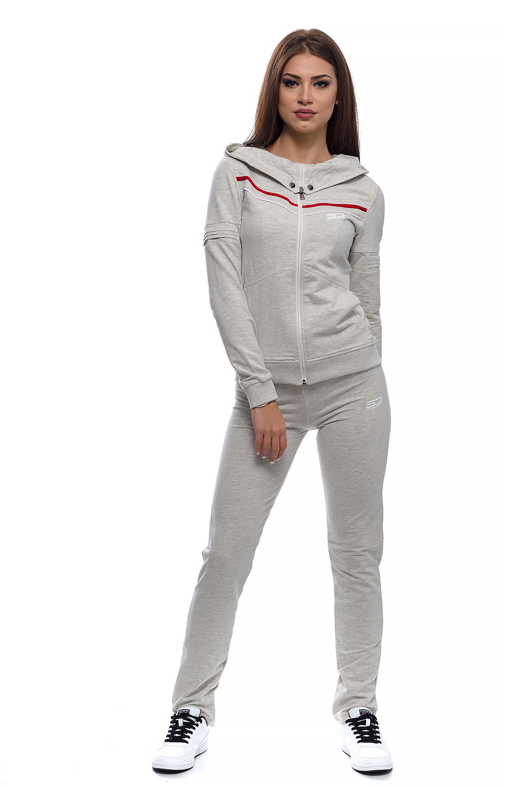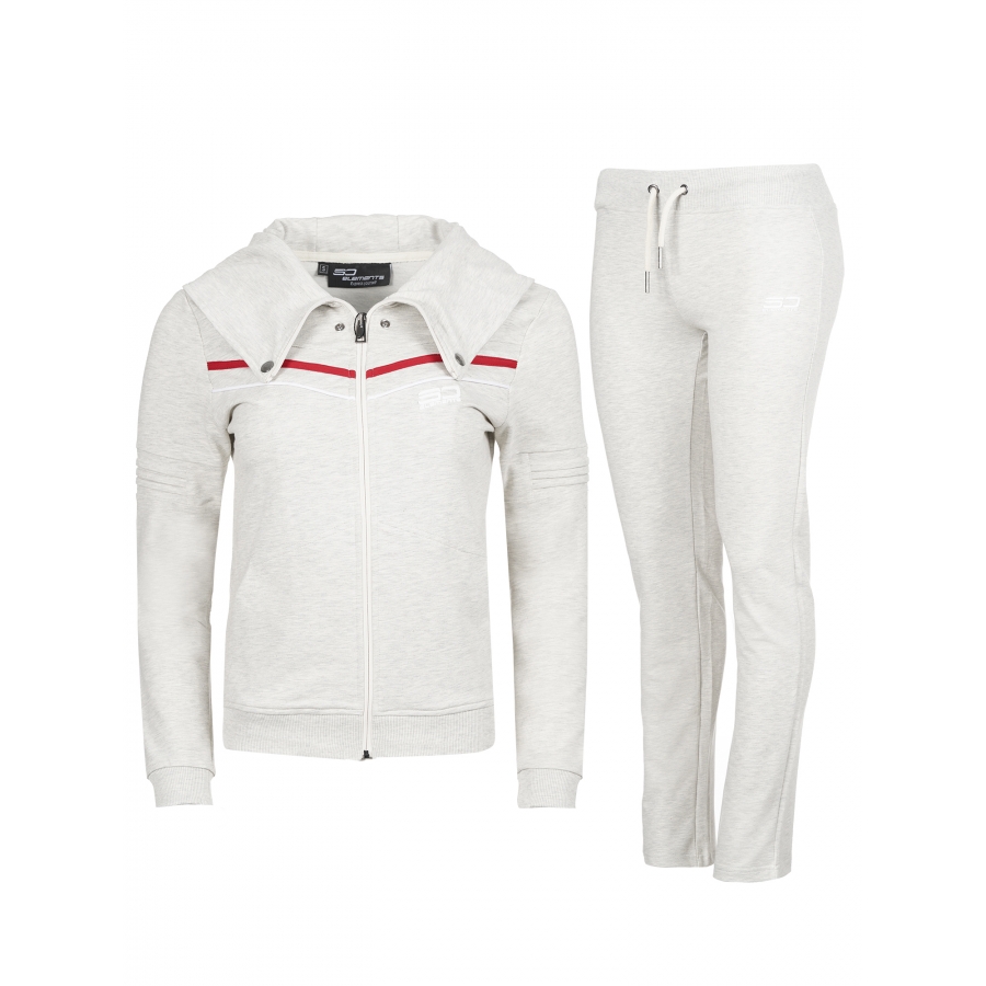 Дамски памучен екип с актуална визия, подходящ за спорт и ежедневие.С голяма качулка,трансформираща се в яка със закопчаване тип - тик так.