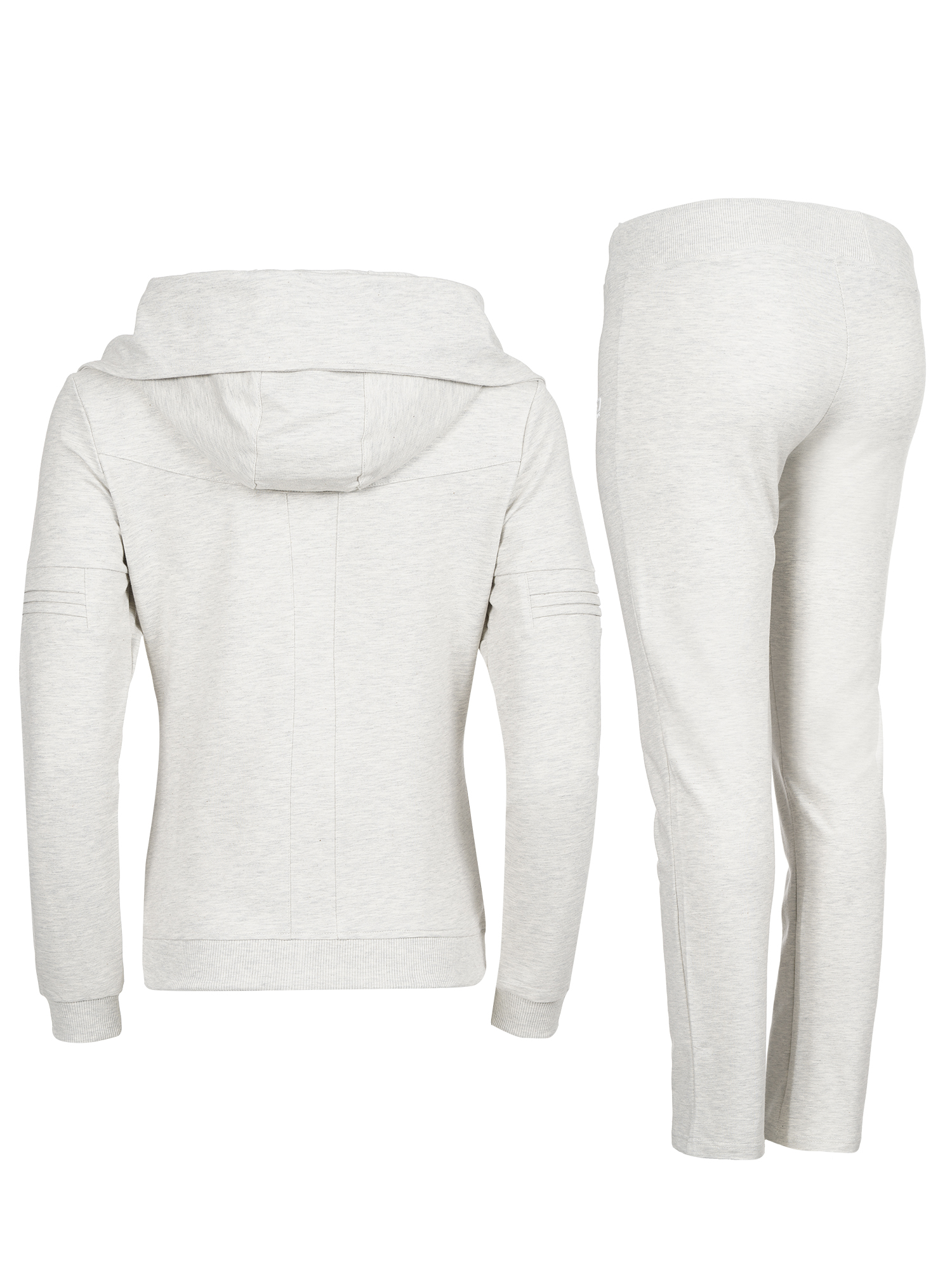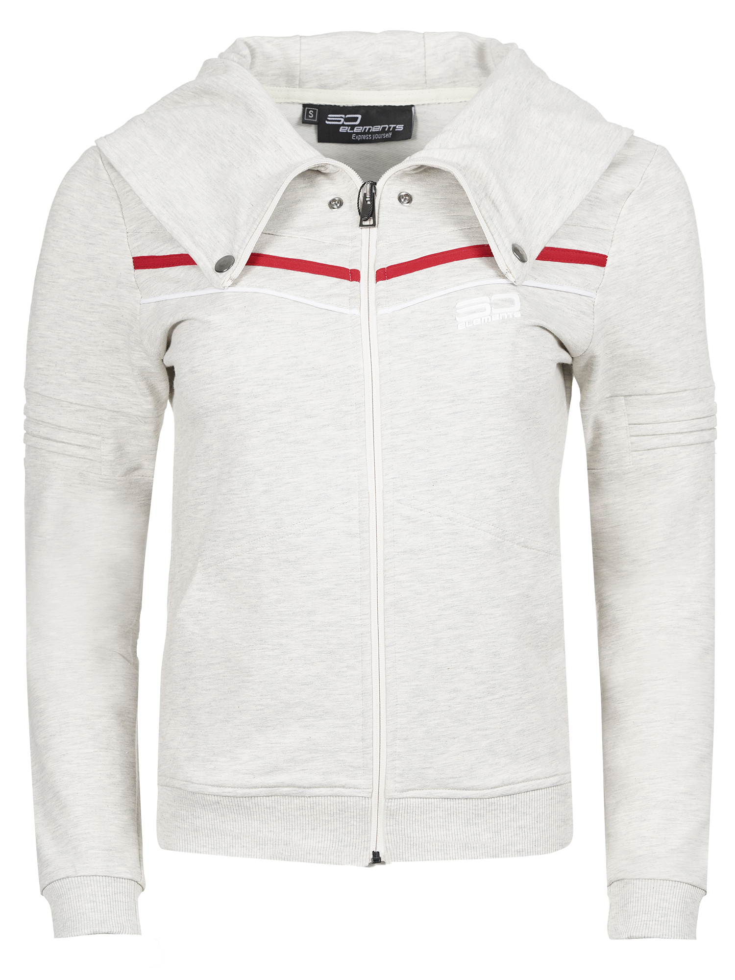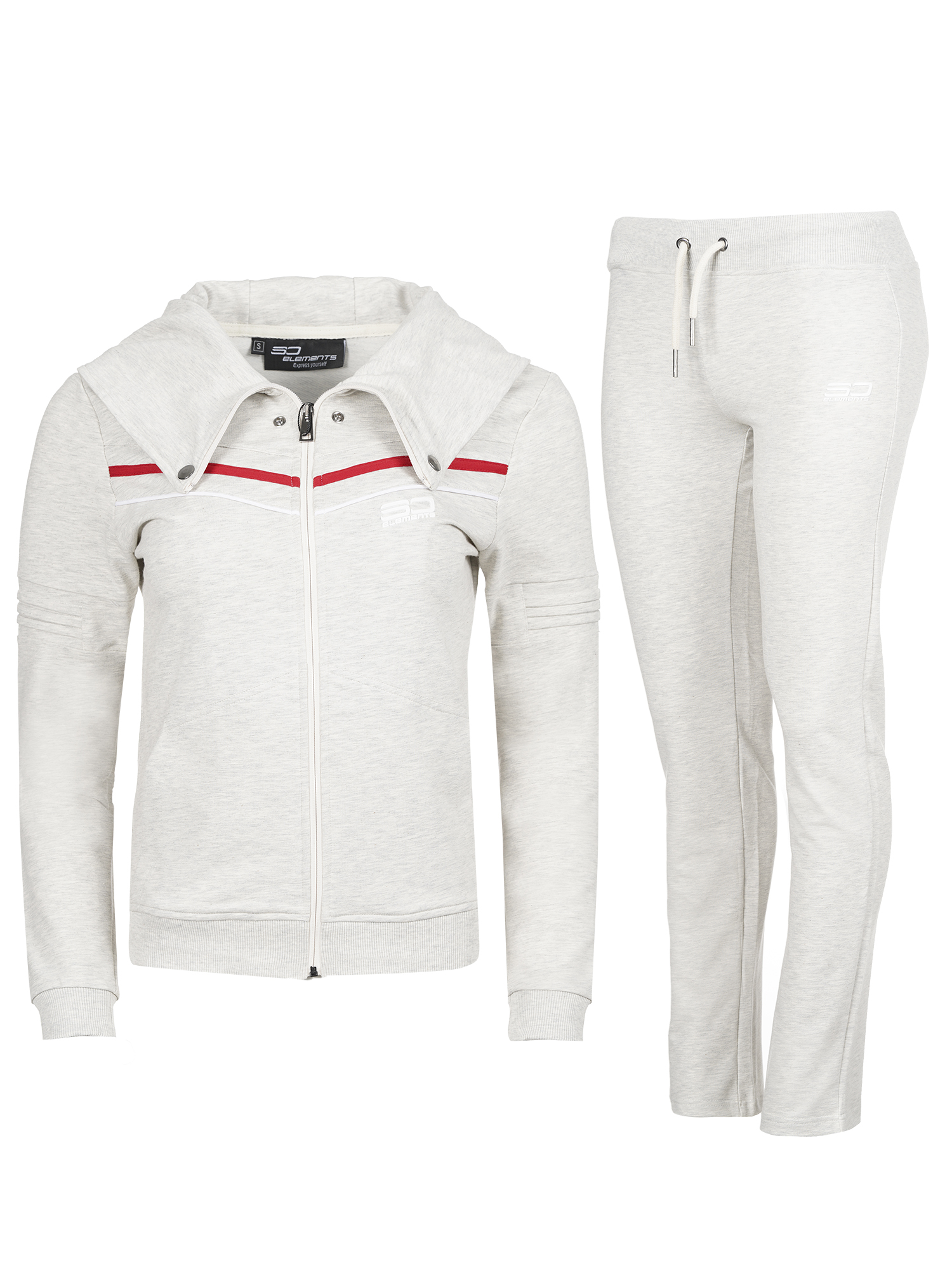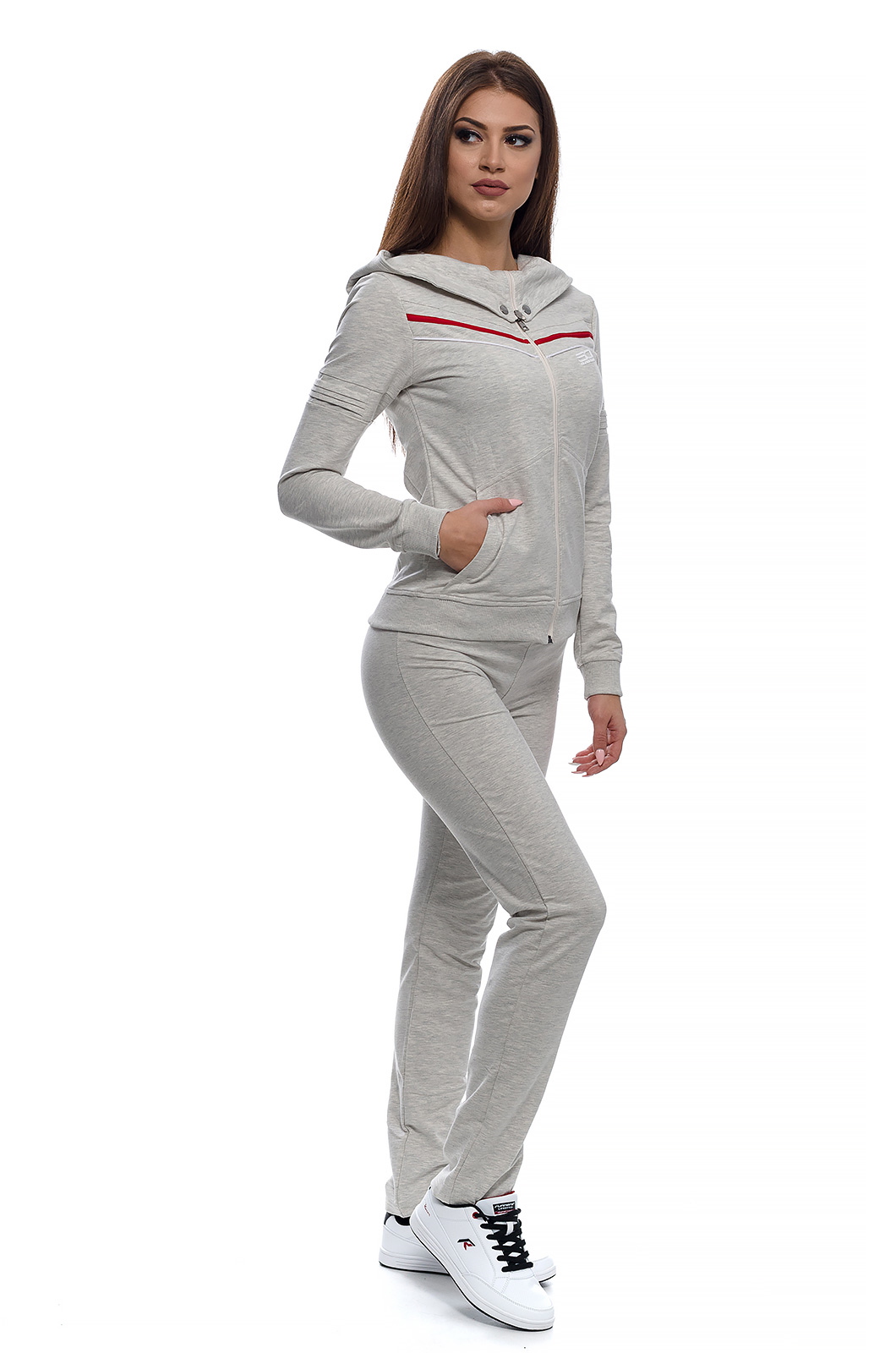 Дамски памучен екип с актуална визия, подходящ за спорт и ежедневие.С голяма качулка,трансформираща се в яка със закопчаване тип - тик так.