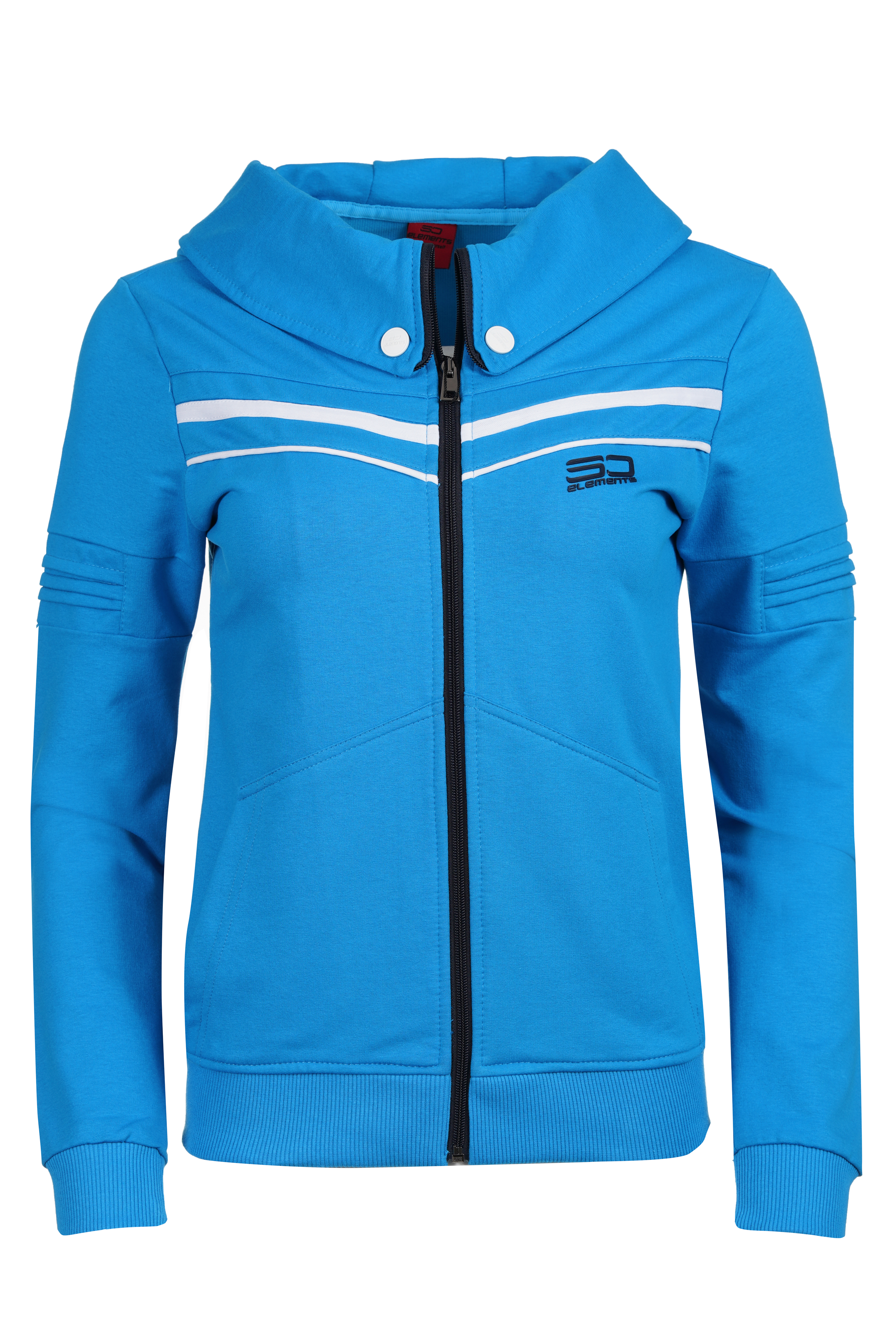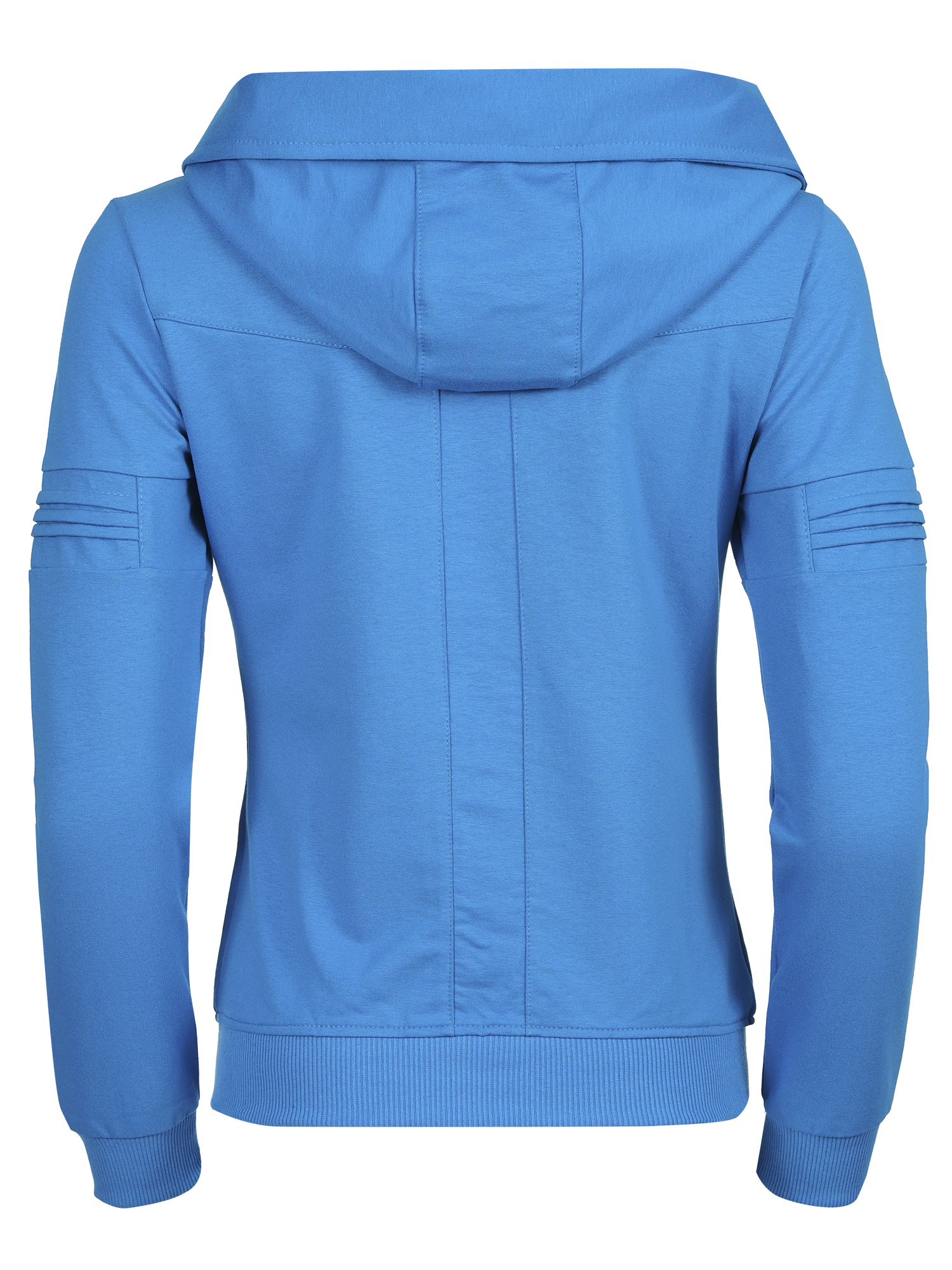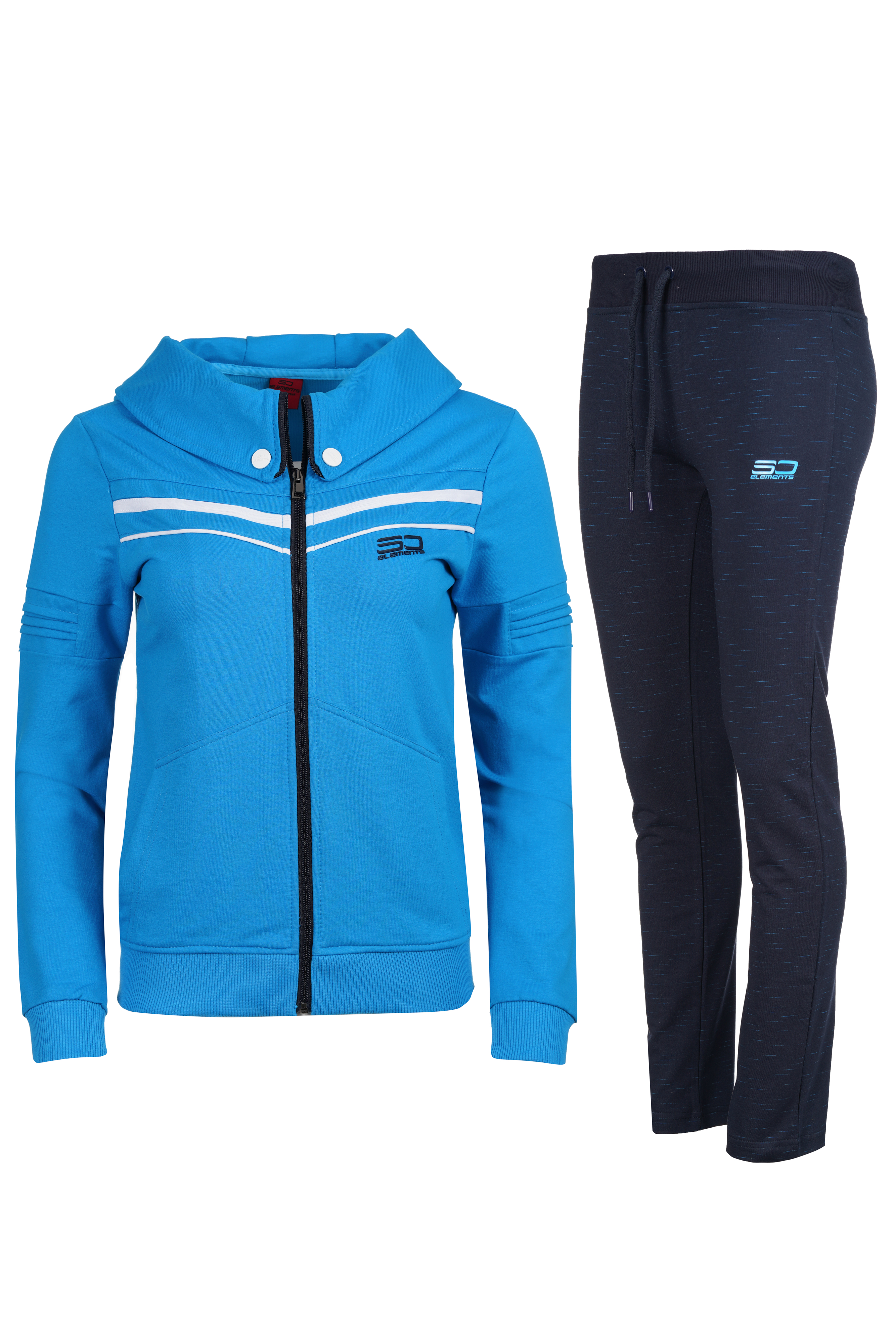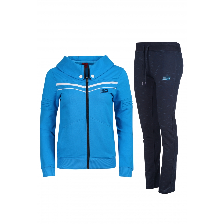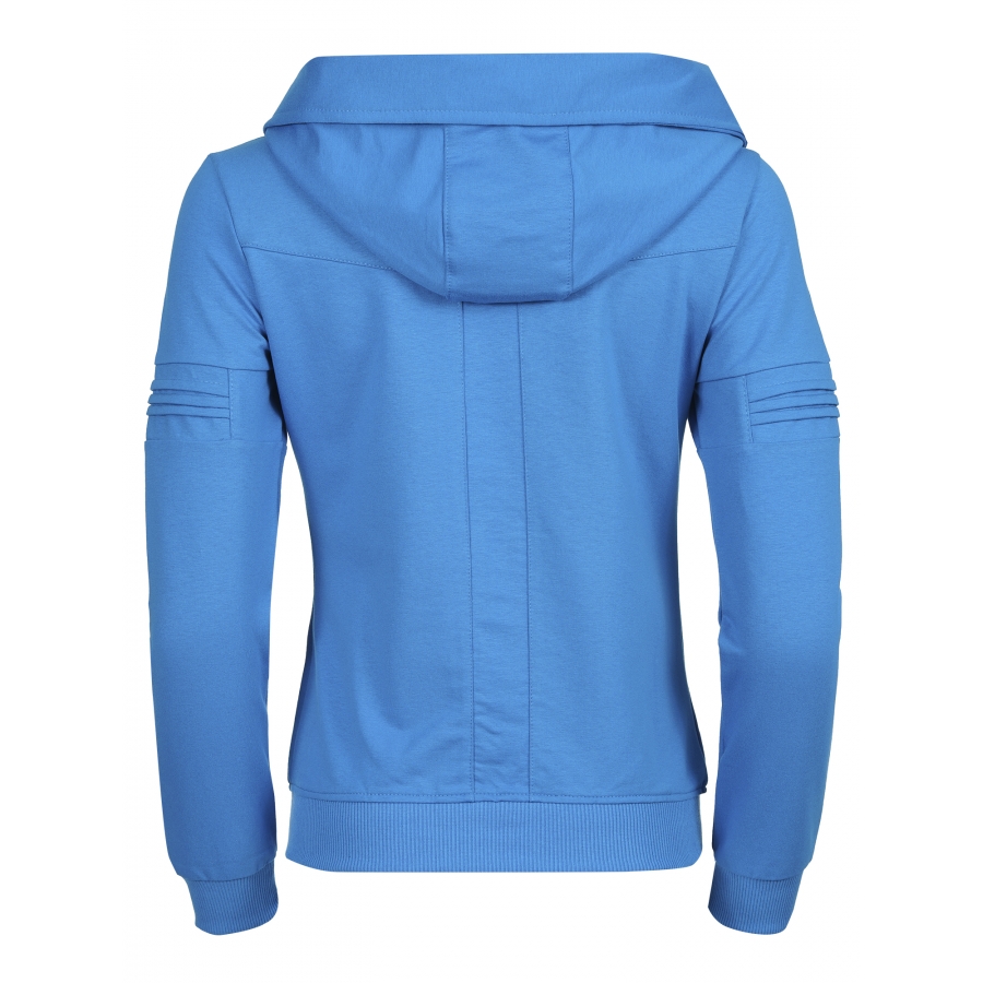 Дамски памучен екип с актуална визия, подходящ за спорт и ежедневие.С голяма качулка,трансформираща се в яка със закопчаване тип - тик так.